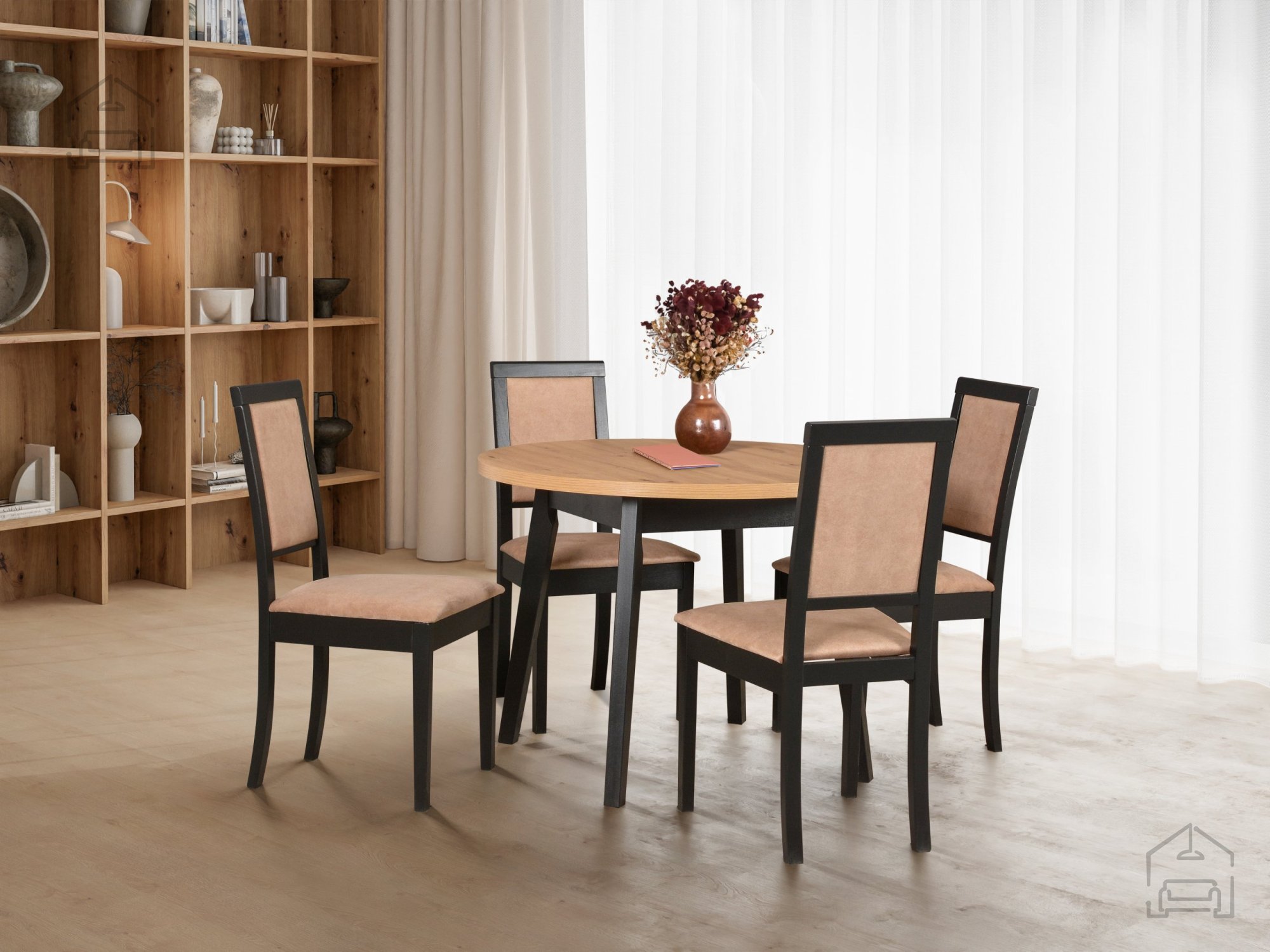 Der Stuhl Roma 13 fügt sich harmonisch in verschiedene Arten von Esszimmern und Küchen ein. In hellen Farbtönen passt er wunderbar zu minimalistischen oder skandinavischen Interieurs, in denen natürliche Materialien und klare Linien dominieren. In dunkleren Farben wie Wenge oder Graphit harmoniert er perfekt mit klassischem oder industriellem Raumdesign. Der Holzrahmen und der weiche Stoff schaffen einen ausgewogenen Kontrast zwischen Robustheit und Komfort, wodurch der Stuhl sowohl als funktionales Möbelstück als auch als ästhetischer Akzent des Raumes wirkt.