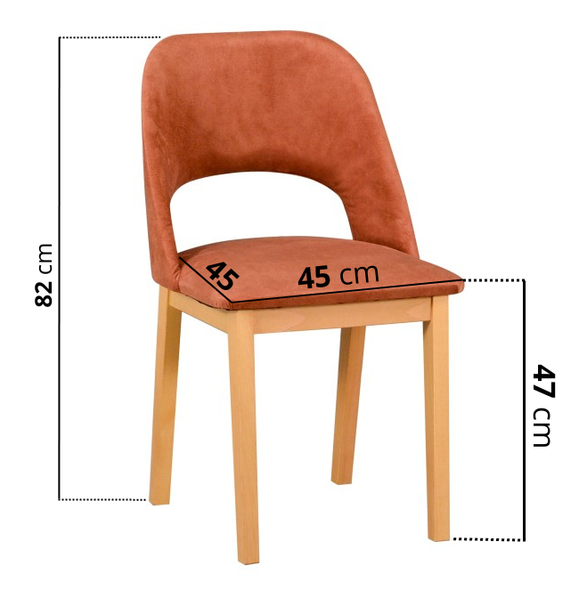 Der Stuhl hat durchdacht gestaltete Maße, die eine einfache Anpassung an verschiedene Tisch- und Raumtypen ermöglichen. Seine Abmessungen betragen Breite 48 cm, Tiefe 47 cm und Höhe 83 cm. Dank des kompakten Designs eignet sich Monti 2 hervorragend sowohl für größere Esszimmer als auch für kleinere Küchen oder Apartments, in denen jeder Zentimeter Platz wertvoll ist. Der Rahmen aus massivem Holz sorgt für Stabilität und bewahrt gleichzeitig die nötige Leichtigkeit, sodass der Stuhl leicht bewegt und bei Bedarf verstaut werden kann.