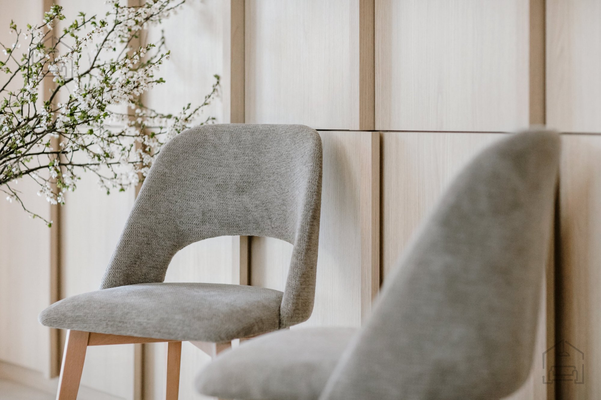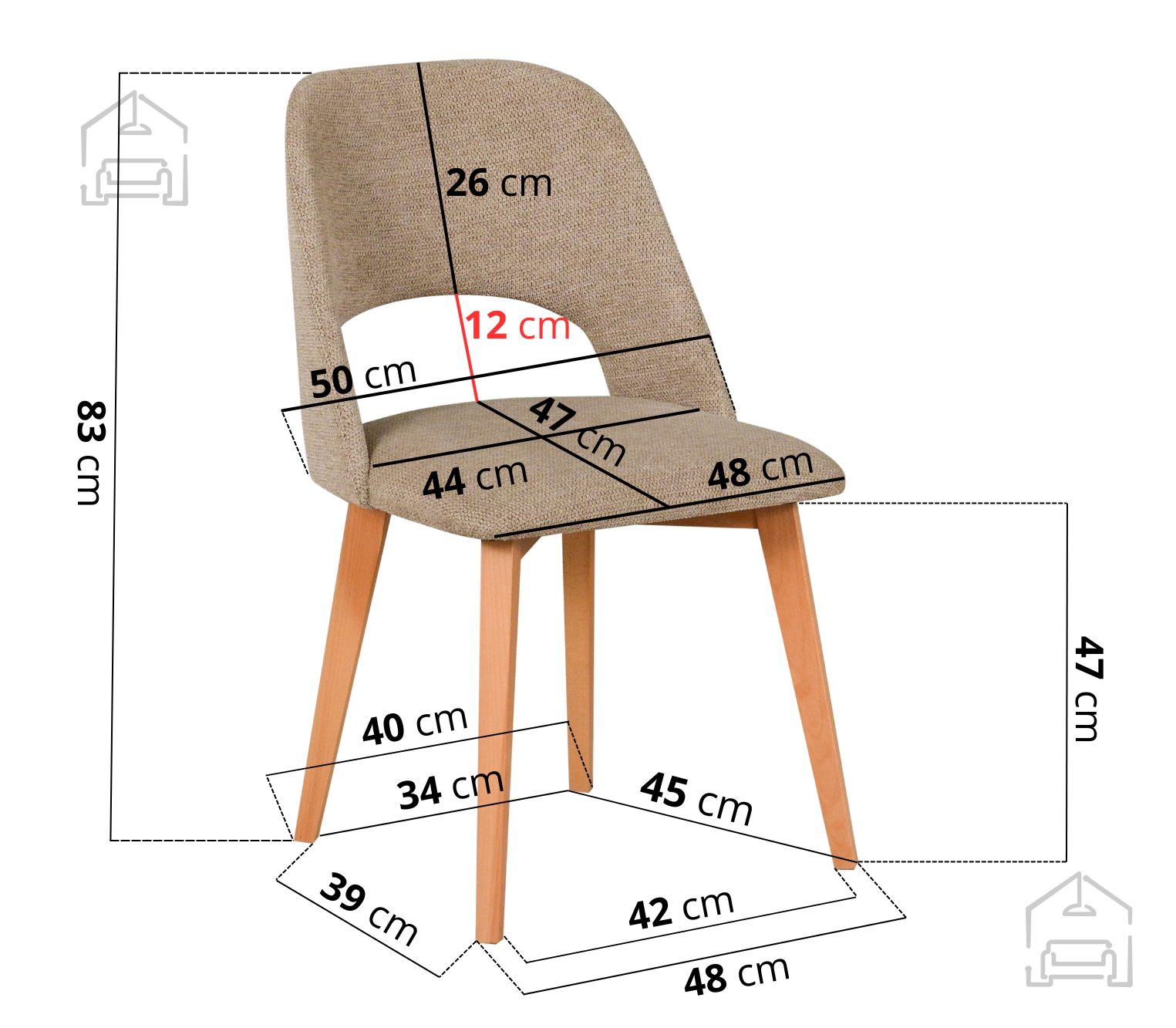 Der Rahmen des Stuhls ist aus massivem Holz gefertigt, was bedeutet, dass er nicht nur schön anzusehen ist, sondern auch äußerst widerstandsfähig gegen den täglichen Gebrauch. Jedes Stück Holz wird sorgfältig ausgewählt und bearbeitet, um die natürliche Struktur und die Farbübergänge zu bewahren, die jedem Stuhl einen einzigartigen Charakter verleihen. Die Oberfläche ist zusätzlich mit Lack geschützt, der die Holztextur hervorhebt und gleichzeitig vor kleineren mechanischen Beschädigungen schützt. Der Sitzstoff, der den Holzrahmen ergänzt, schafft ein angenehmes Gefühl von Wärme und Behaglichkeit und ermöglicht auch bei längeren Mahlzeiten bequemes Sitzen.