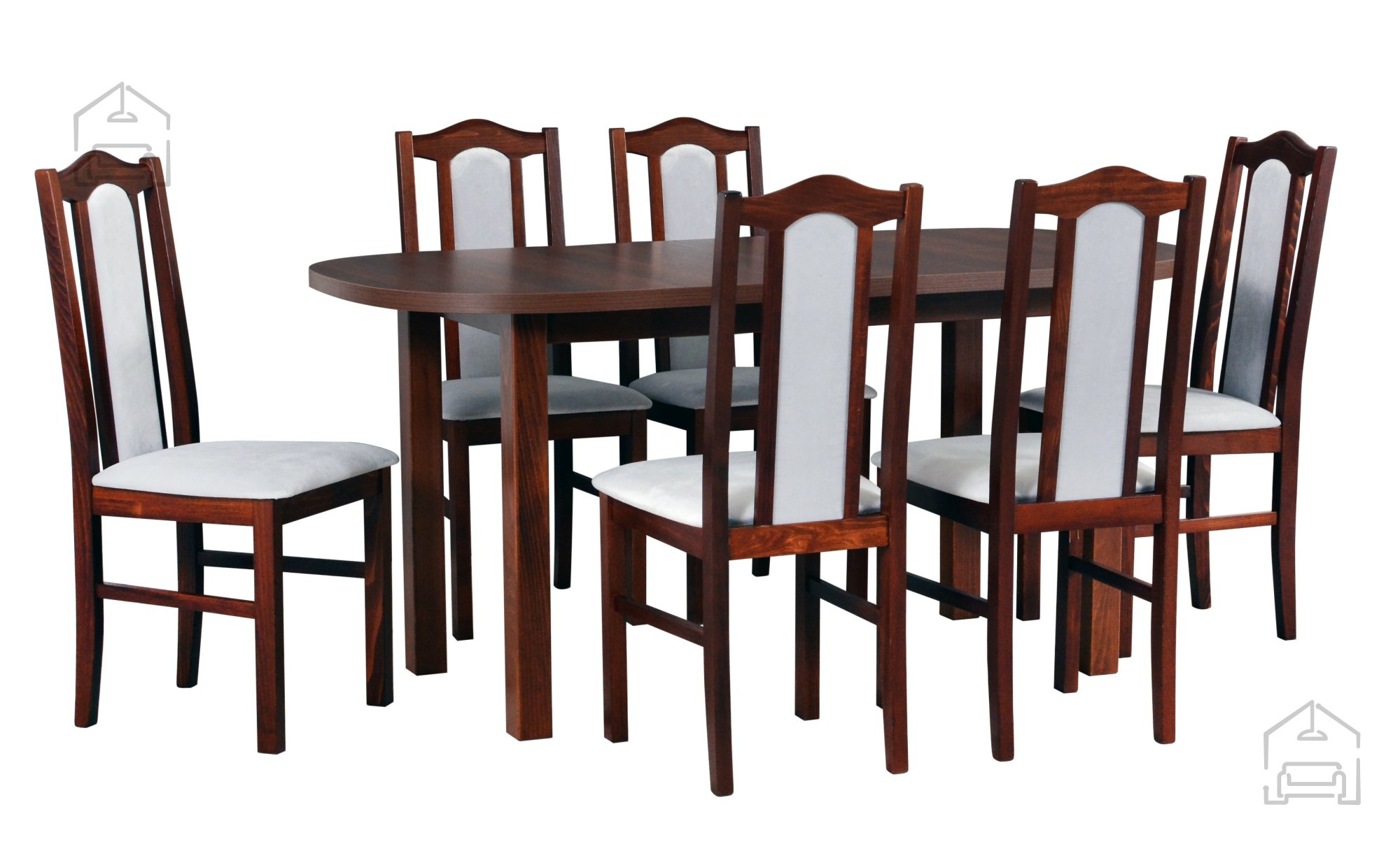 Ausziehbarer Tisch 160–200 cm aus massivem Buchenholz: Esszimmer-Set Tisch Wenus 1 Nussbaum + 6 Stühle Bos 2 Nussbaum 1B – Drewmix.