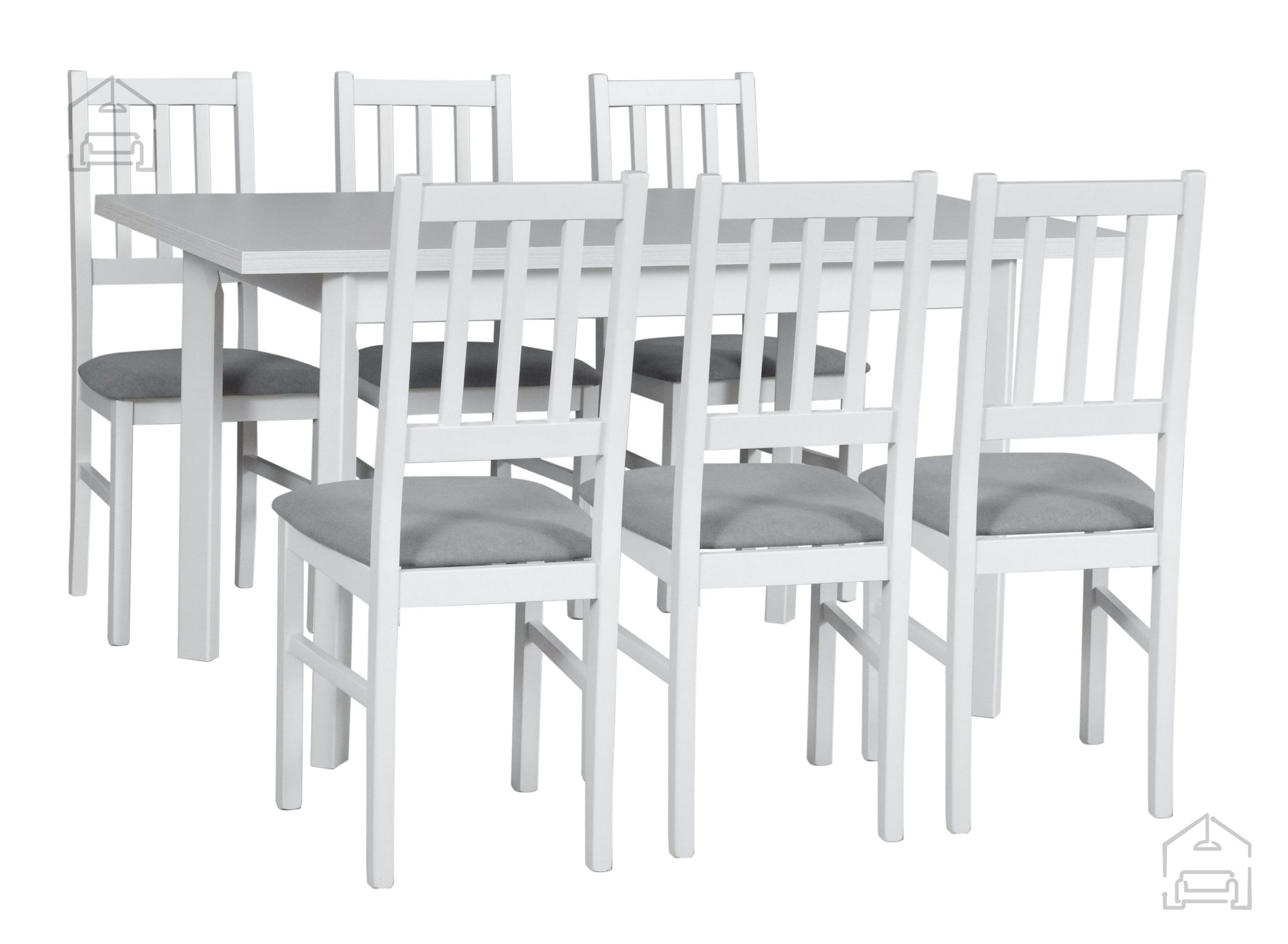 Ausziehmechanismus 120–150 cm: Esszimmer-Set Tisch Max 5 P Weiß + 6 Stühle Bos 4 Weiß 1B – Drewmix.