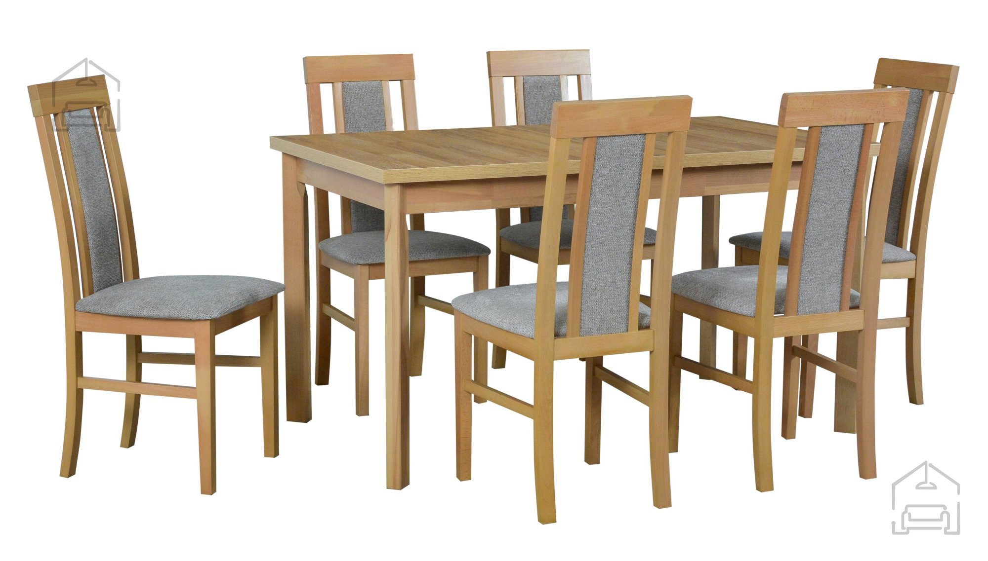 Ausziehbarer Tisch 140–180 cm und massives Buchenholz: Esszimmer-Set Tisch Wien 1P grandson + 6 Stühle Nilo 2 grandson 35A – Drewmix.