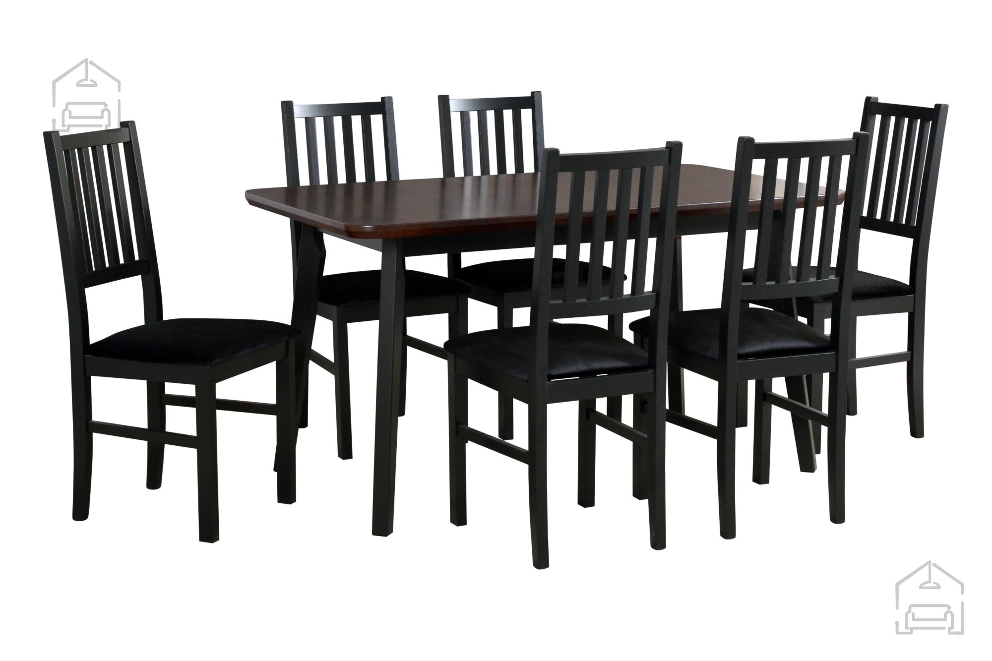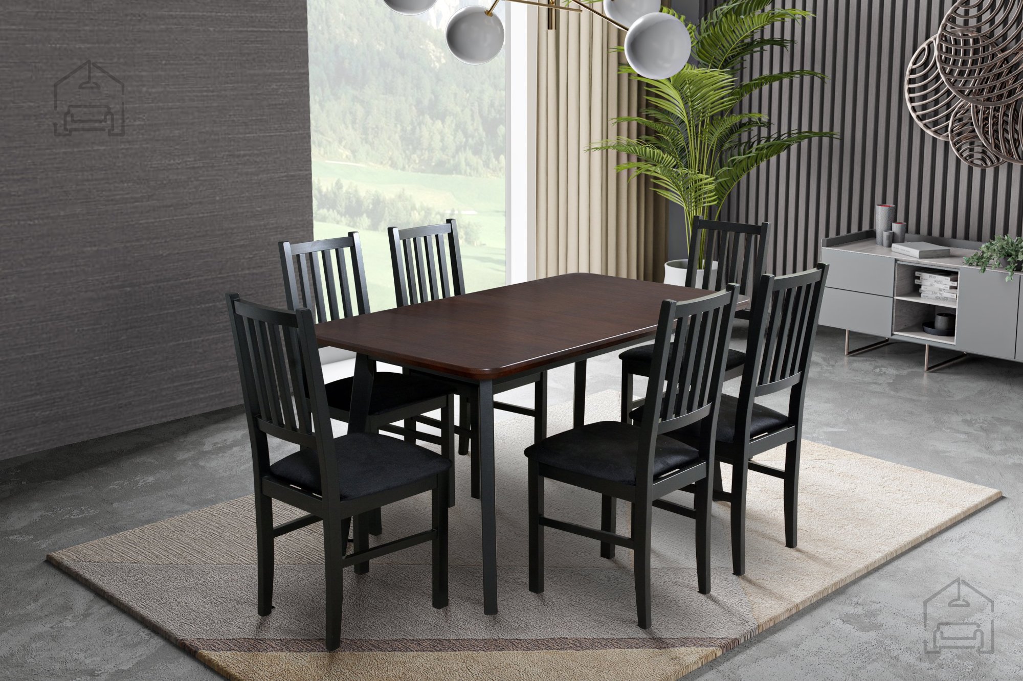 Ausziehbarer Tisch 140–180 cm aus massivem Buchenholz: Esszimmer-Set Tisch Wien 7 schwarz/walnuss + 6 Stühle Nilo 7 schwarz 29B – Drewmix.