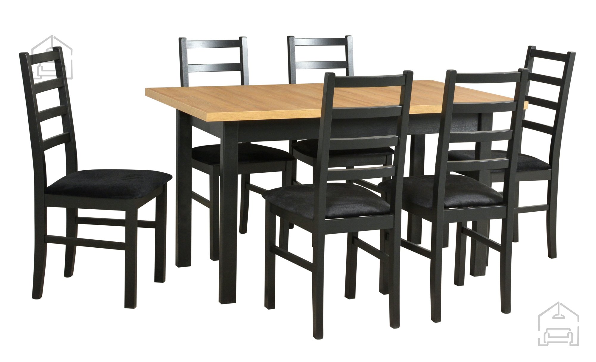 Ausziehbare Fläche von 140 bis 220 cm: Esszimmer-Set Tisch Modena 1 XL schwarz/grandson + 6 Stühle Nilo 8 schwarz 29B – Drewmix.