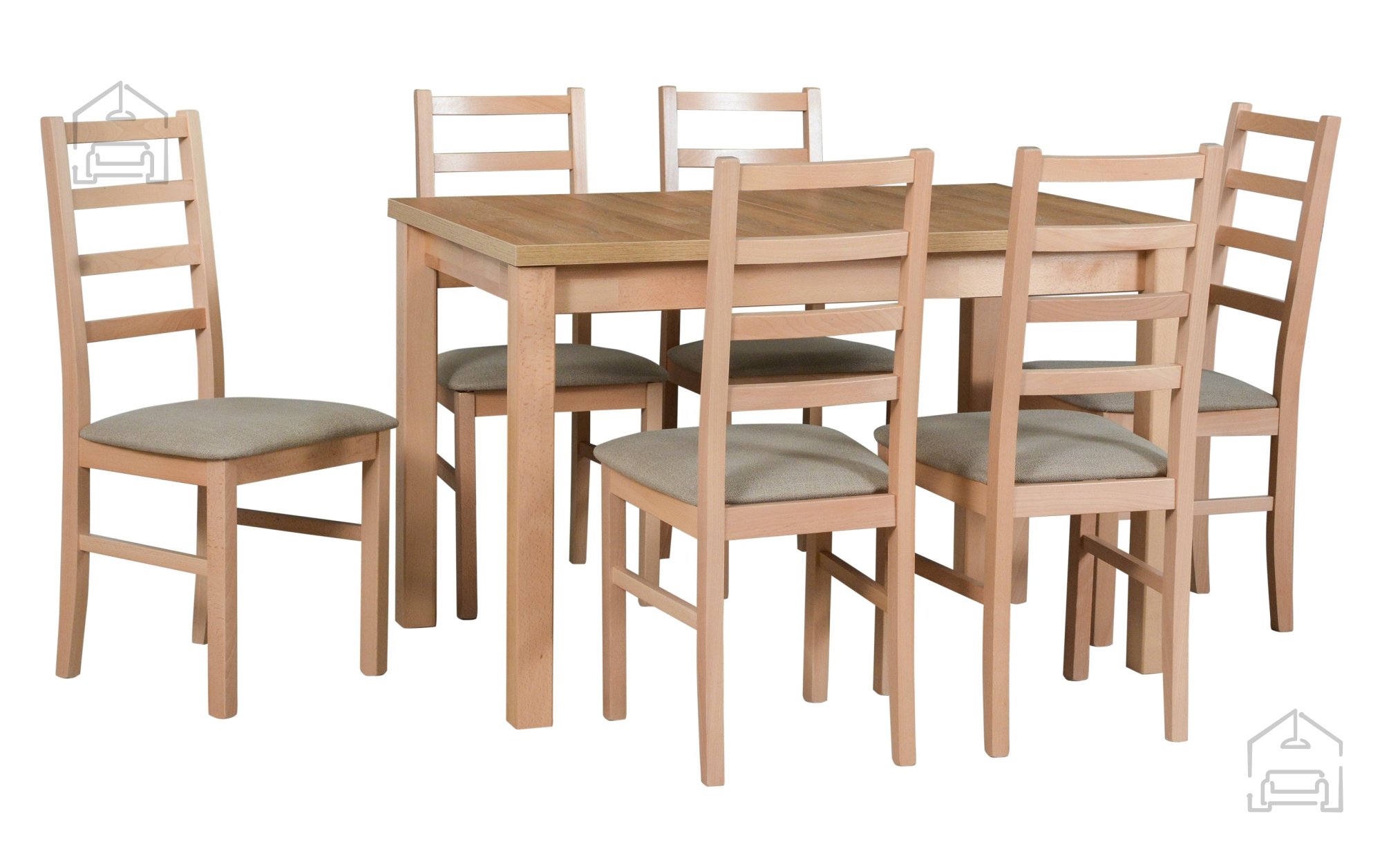 Wählen Sie das Set Tisch Max 5 Buche/Wotan + 6 Stühle Nilo 8 Buche 21B – Drewmix und erleben Sie, wie hochwertige Verarbeitung, natürliche Materialien und durchdachtes Design ein Esszimmer schaffen, in dem Mahlzeiten zu angenehmen Momenten des Beisammenseins werden. Dieses Set beweist, dass sich Funktionalität und Schönheit perfekt ergänzen können – und das in Ihrem Zuhause.