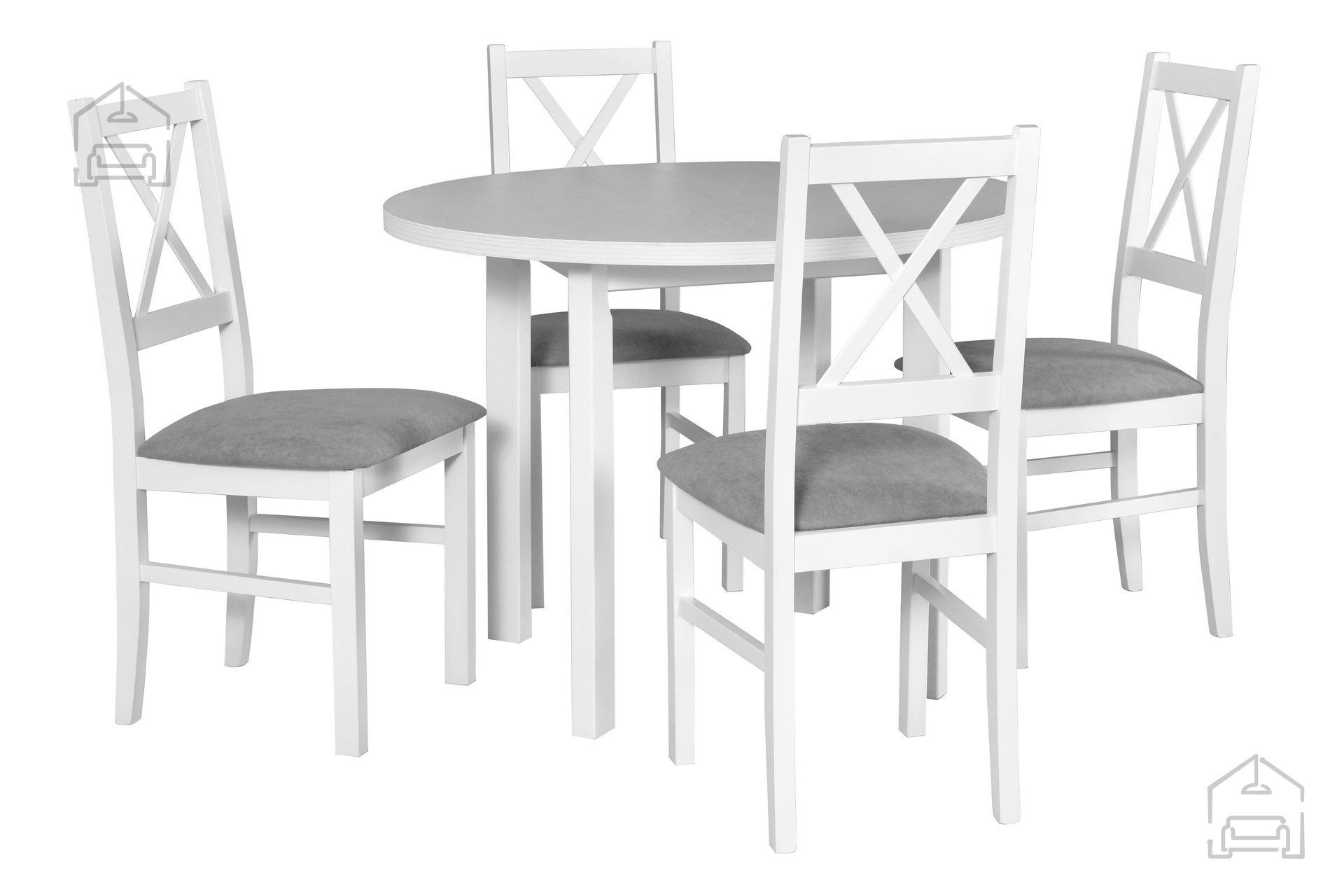 Massive Buche und laminierte Tischplatte: Esszimmer-Set Tisch Poli 2 weiß + 6 Stühle Nilo 10 weiß 1B – Drewmix.