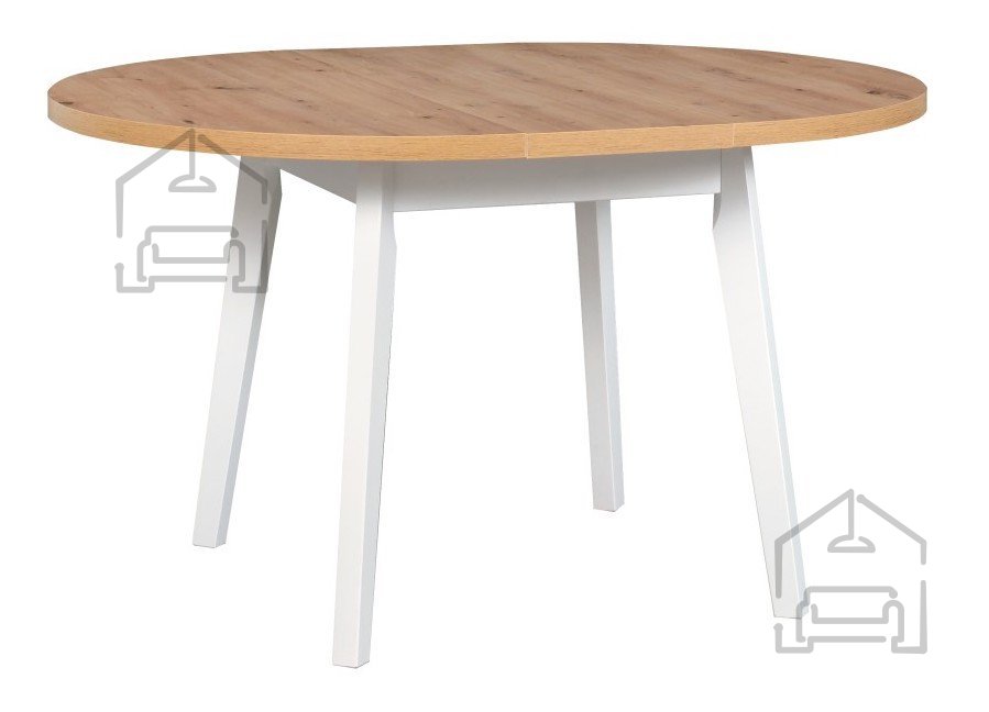 Das Modell Oslo 3 L in der Farbkombination Weiß/Artisan schafft ein angenehmes visuelles Gleichgewicht zwischen hellen Tönen und der Wärme der natürlichen Holzdekore. Die Kombination von Weiß und Artisan wirkt modern und zugleich wohnlich, sodass das Set gut zu verschiedenen Einrichtungsstilen passt – vom skandinavischen Minimalismus bis zum rustikalen Landhausstil. Der Stuhl Nilo 11 in der Farbe Weiß 21B ergänzt den Tisch mit derselben Ästhetik und Holzkonstruktion, die die Harmonie des Gesamtbildes betont.