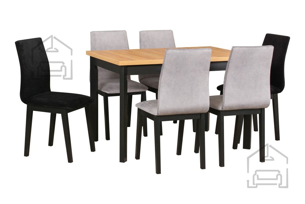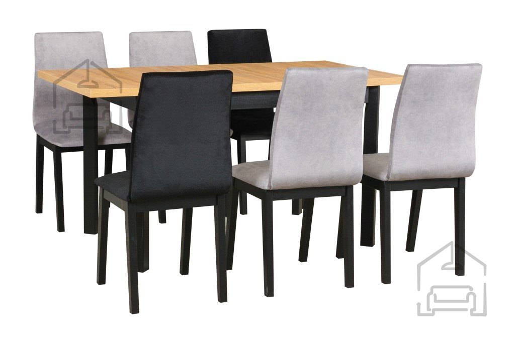 Ausziehbare Fläche 140–180 cm: Esszimmer-Set Max 5P schwarz/Grandson + 6 Stühle Luna 1 schwarz – Drewmix.