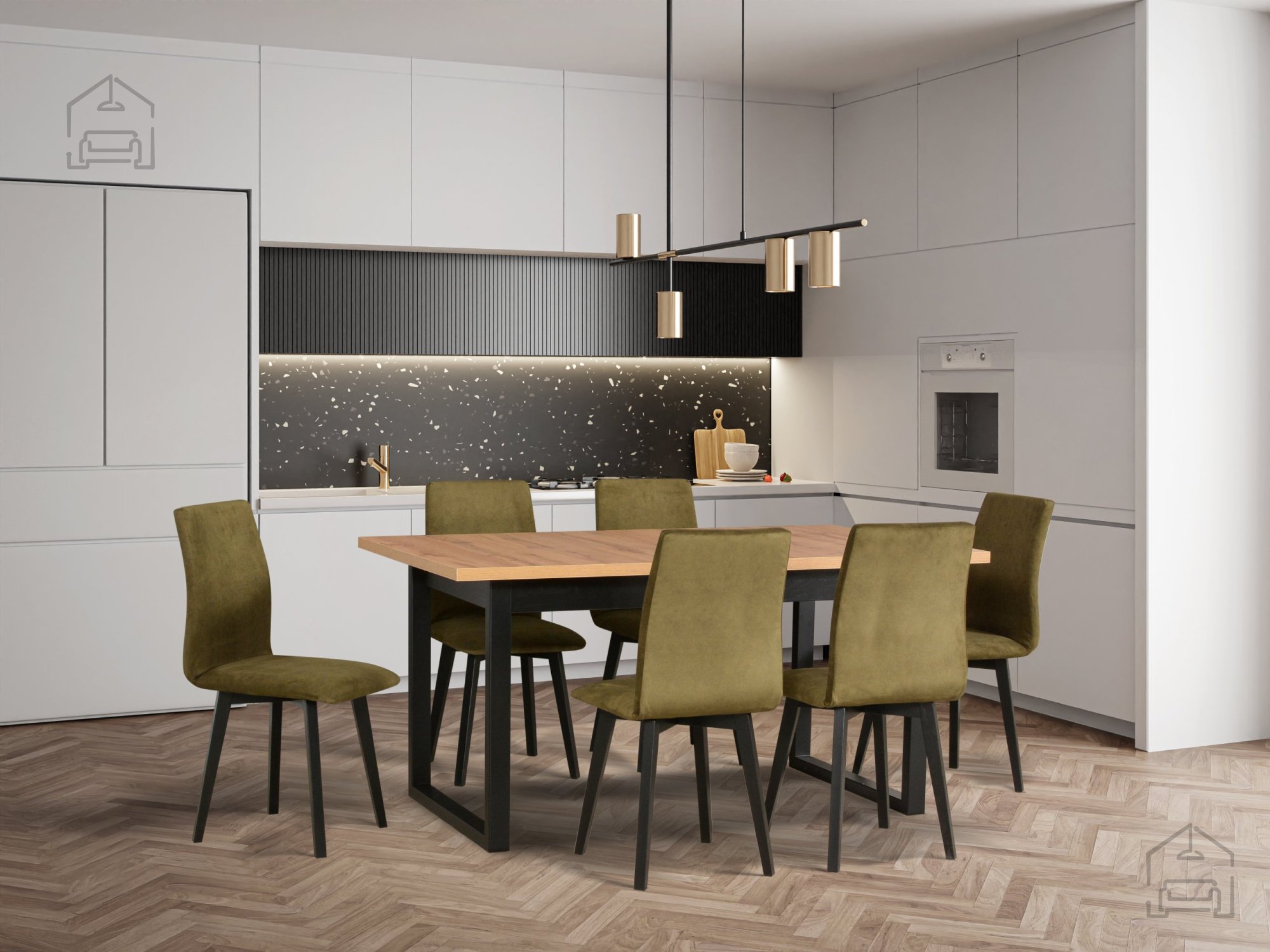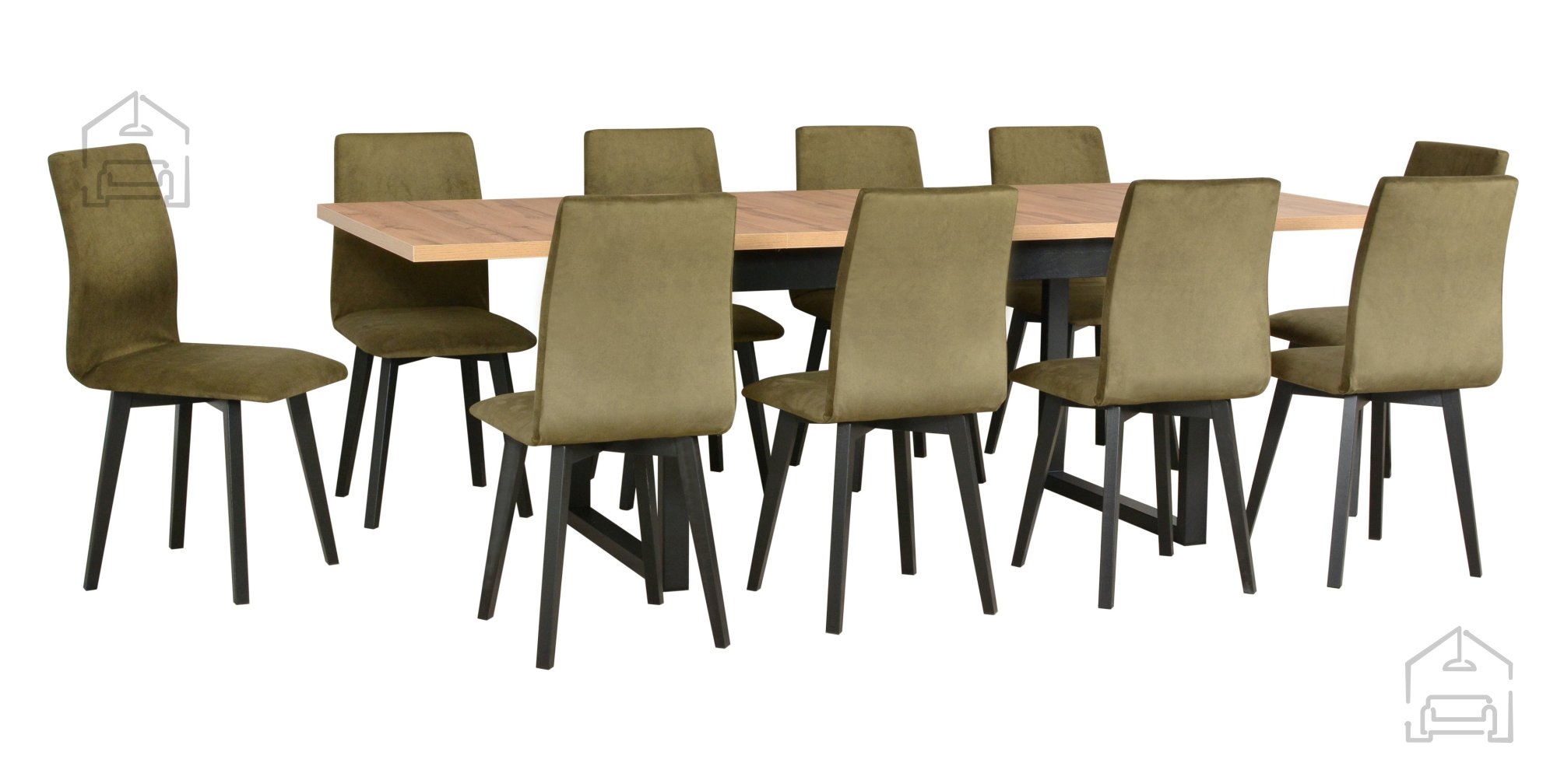 Das Set Ikon 3 L + Luna 2 ist eine ausgezeichnete Wahl für alle, die eine Kombination aus Praktikabilität und Ästhetik suchen. Dank seiner universellen Farbkombination Schwarz/Artisan passt es gut zu vielen Einrichtungsstilen – von skandinavisch über modern bis hin zu retro. Der Tisch mit klaren Linien und einfachen Formen ermöglicht es, dass er zum zentralen Stück des Raumes wird, das Sie mit dekorativen Accessoires nach Ihrem Geschmack ergänzen können. Die Stühle können nach Wunsch mit weichen Kissen für noch mehr Komfort versehen werden oder in ihrer ursprünglichen Form bleiben, in der ihre Eleganz am besten zur Geltung kommt.