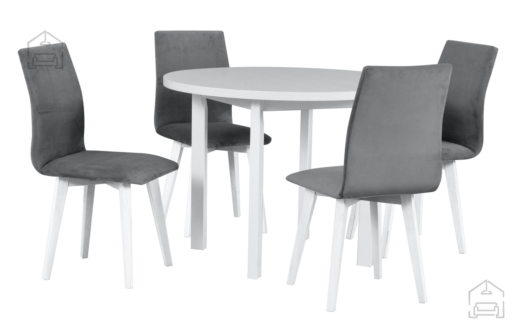 Das Esszimmer-Set Poli 2 Weiß + 4 Stühle Luna 2 Weiß 31A des polnischen Herstellers Drewmix vereint zeitlose Eleganz, langlebige Materialien und praktische Funktionalität, die ein modernes Zuhause benötigt. Das Hauptelement des Sets ist ein geräumiger Tisch mit den Maßen 100 × 100 × 76 cm, gefertigt aus massivem Buchenholz mit laminierter Oberfläche, was ausgezeichnete Beständigkeit gegen Kratzer, Feuchtigkeit und alltägliche Abnutzung gewährleistet. Die Oberfläche in klassischem Weiß schafft einen hellen, sauberen und harmonischen Eindruck, der sich leicht mit verschiedenen Einrichtungsstilen kombinieren lässt – vom skandinavischen Minimalismus bis hin zum modernen Landhausstil.