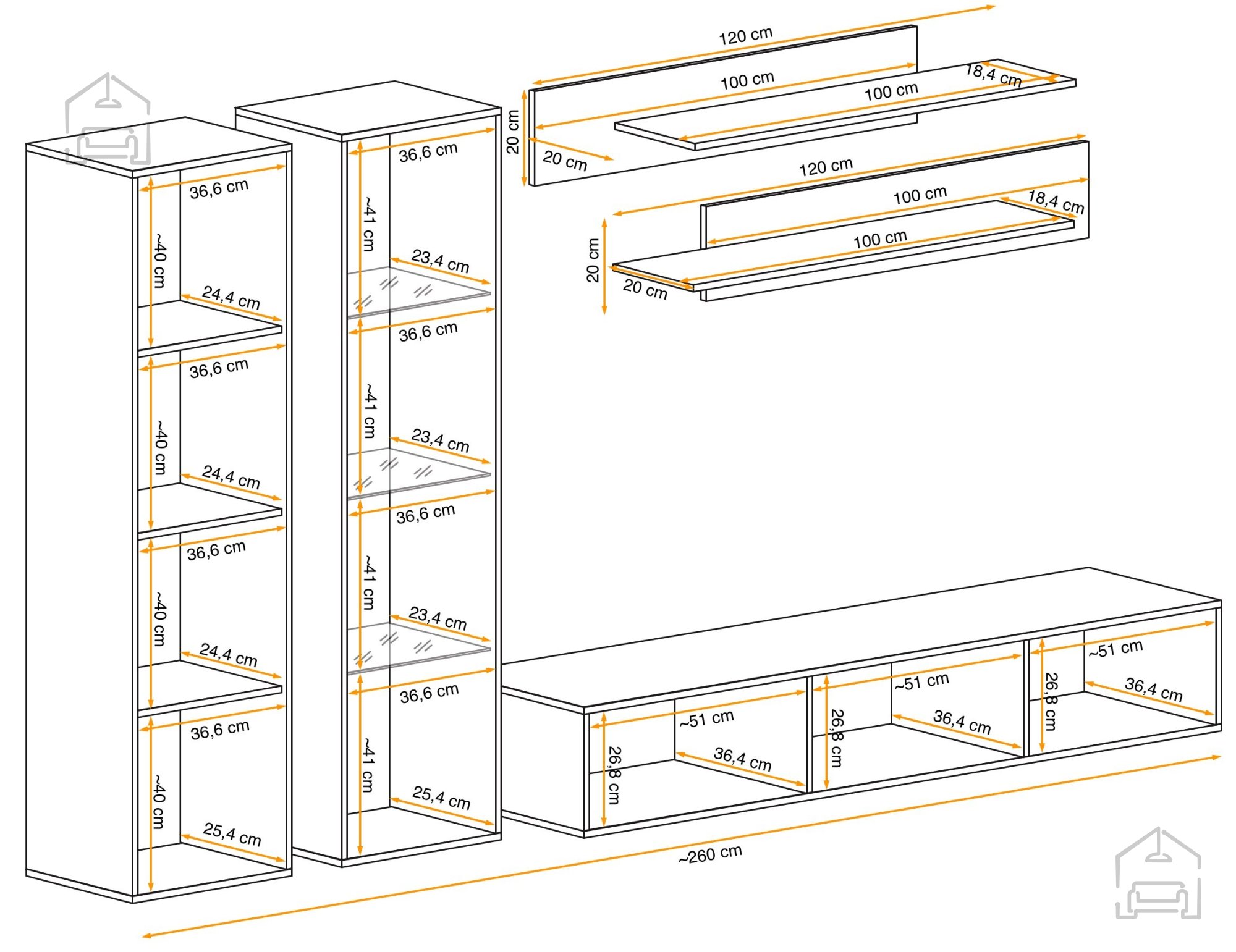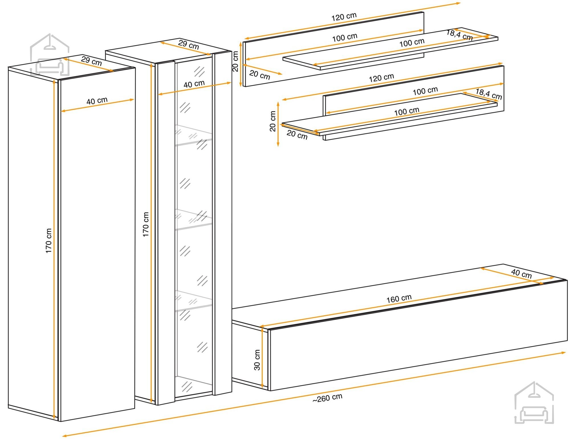 die Breite 2600 mm die Tiefe 400 mm die Höhe 1700 mm