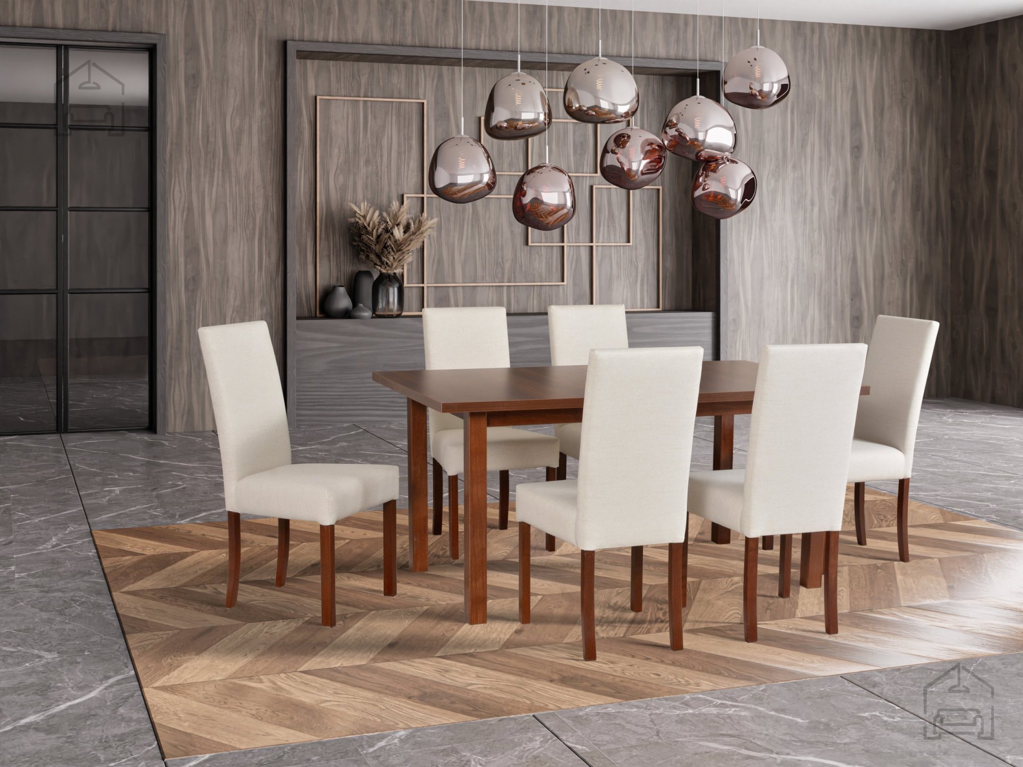 Ausziehmechanismus 160–200 cm: Esszimmer-Set Modena 2 + 6 Stühle Roma 2 – Drewmix.