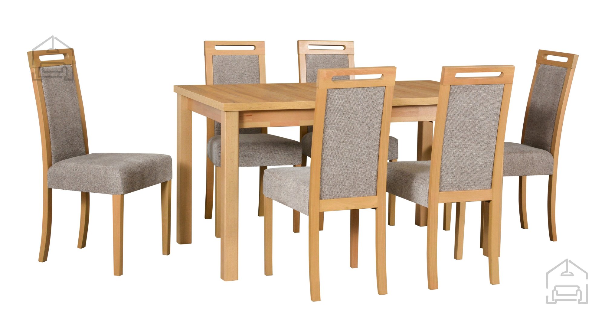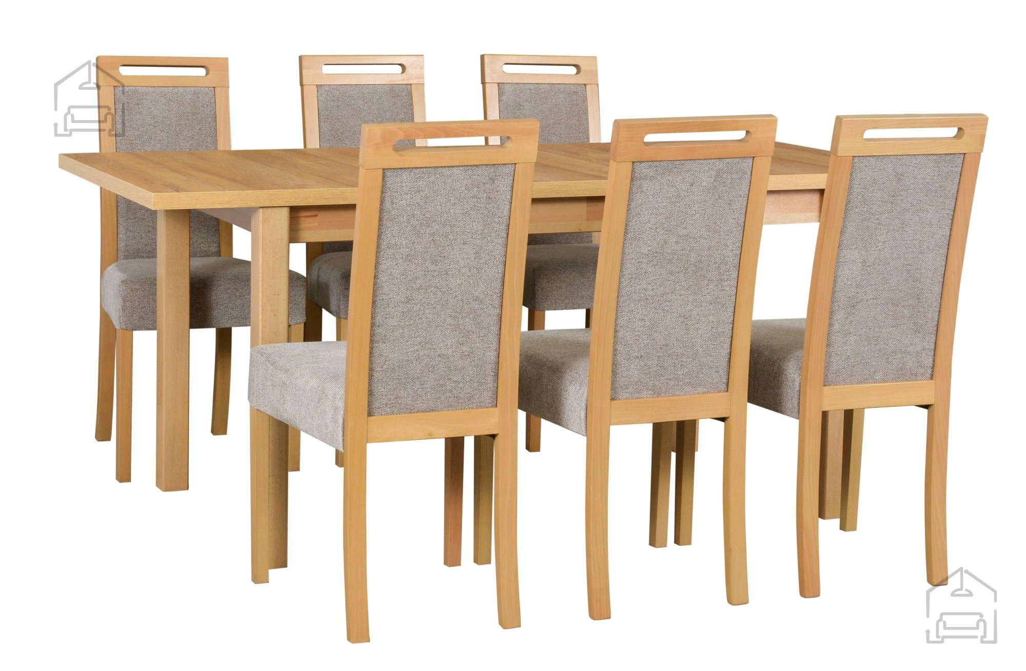 Ausziehbarer Tisch 140–180 cm aus massivem Buchenholz: Esszimmer-Set Modena 1 grandson + 6 Stühle Roma 5 grandson Aragon 5 – Drewmix.