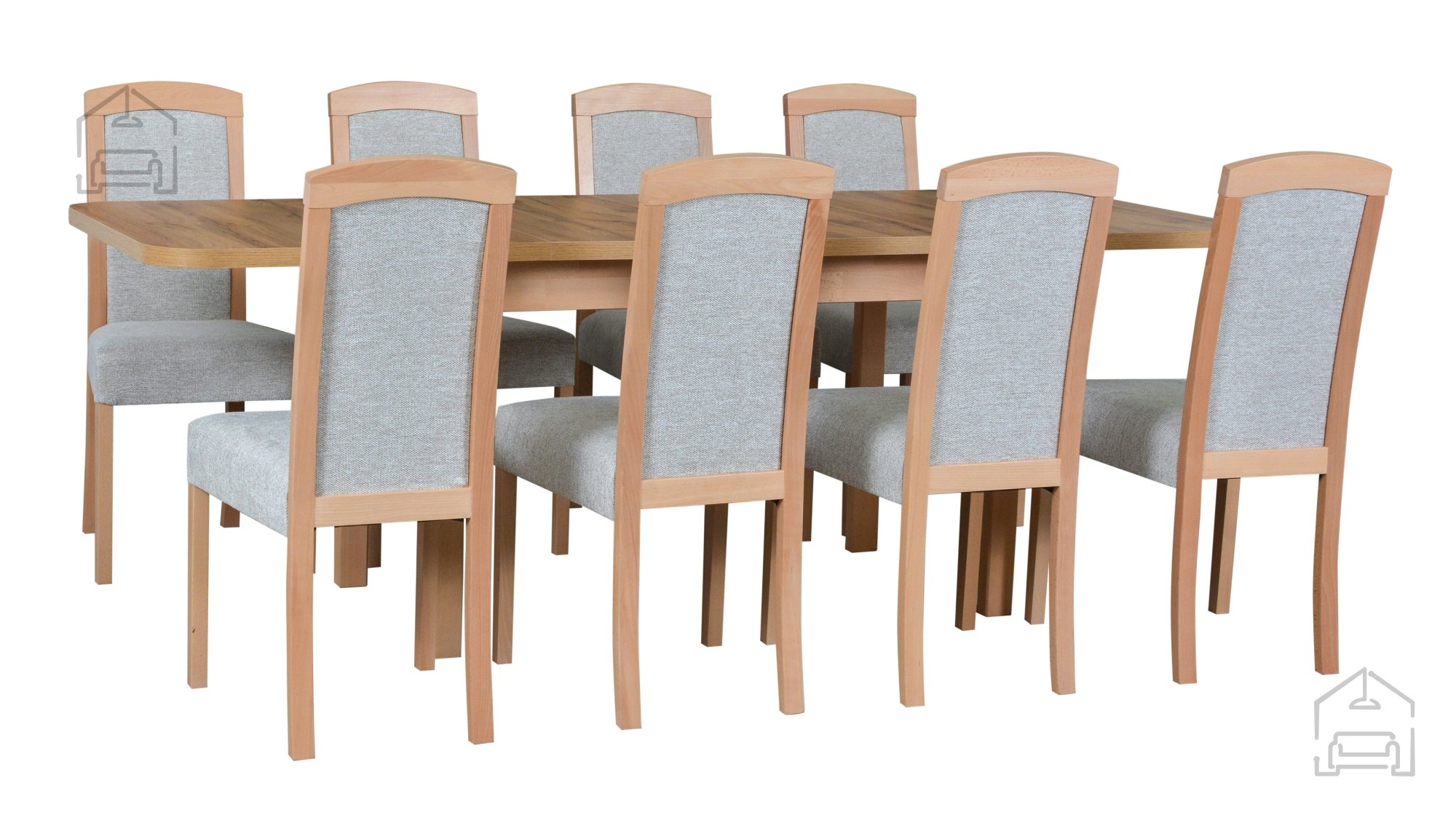 Ausziehbarer Tisch 140–220 cm und massives Buchenholz: Esszimmer-Set Wenus 2 XL + 6 Stühle Roma 7 – Drewmix.
