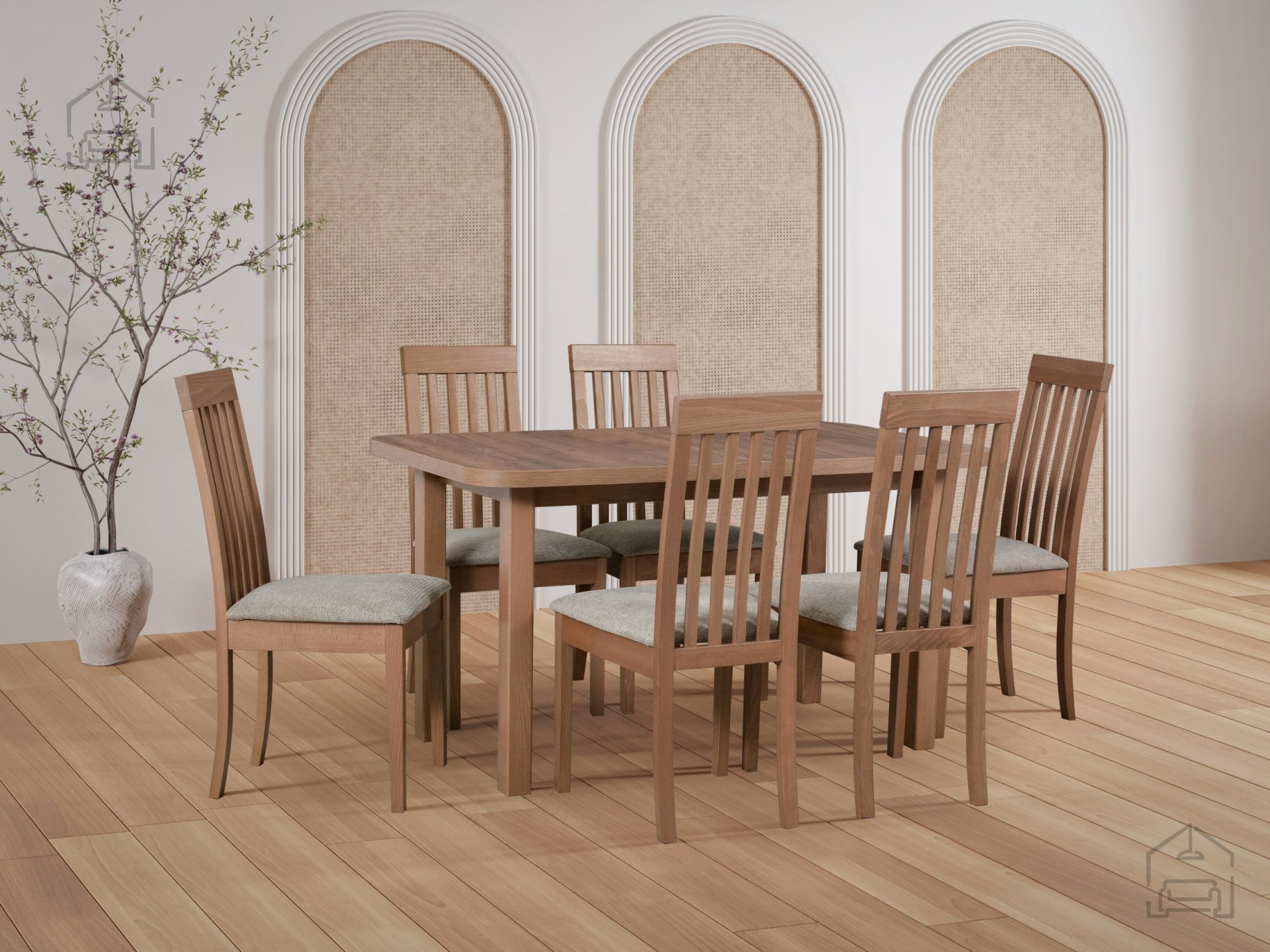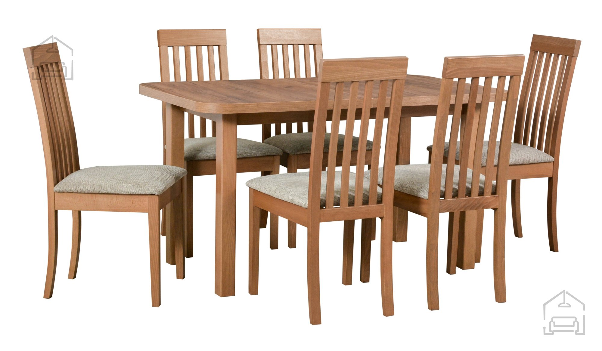 Ausziehbarer Tisch 140–180 × 80 × 76 cm und massives Buchenholz: Esszimmer-Set Wenus 2 heller Nussbaum + 6 Stühle Roma 9 heller Nussbaum 35A aragon 20 – Drewmix.