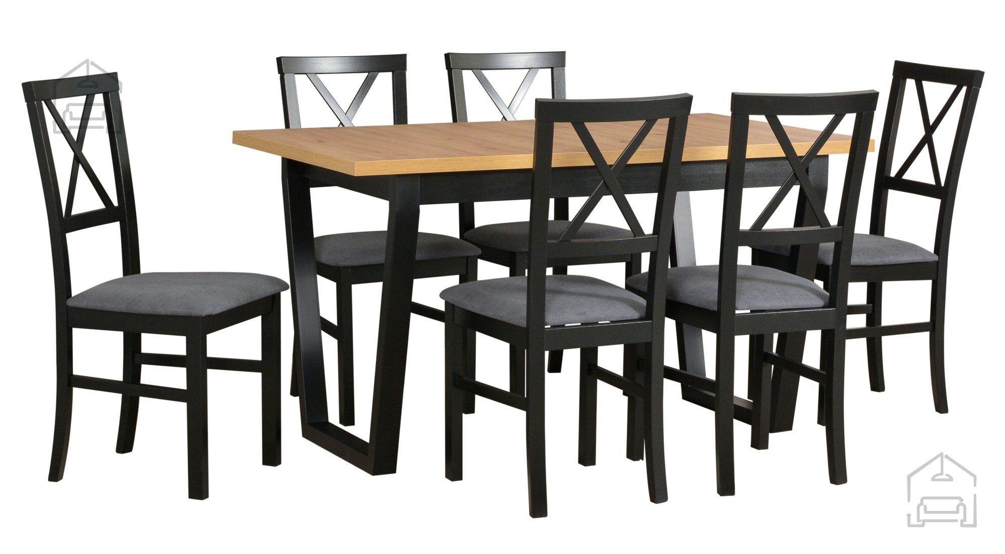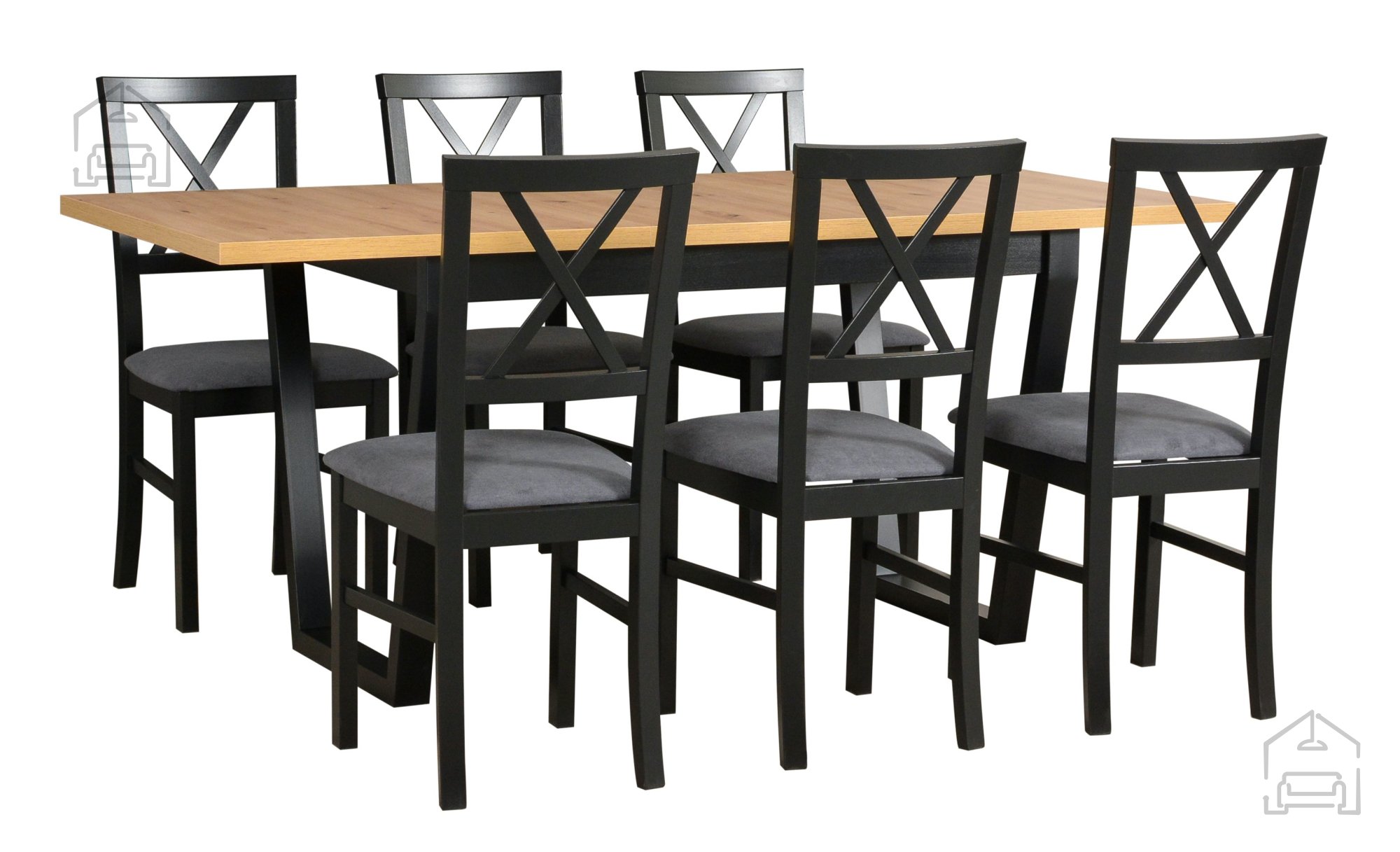 Ausziehbarer Tisch 140–180 cm und massives Buchenholz: Esszimmer-Set Ikon 2 schwarz/wotan + 6 Stühle Milano 4 schwarz 28B – Drewmix.