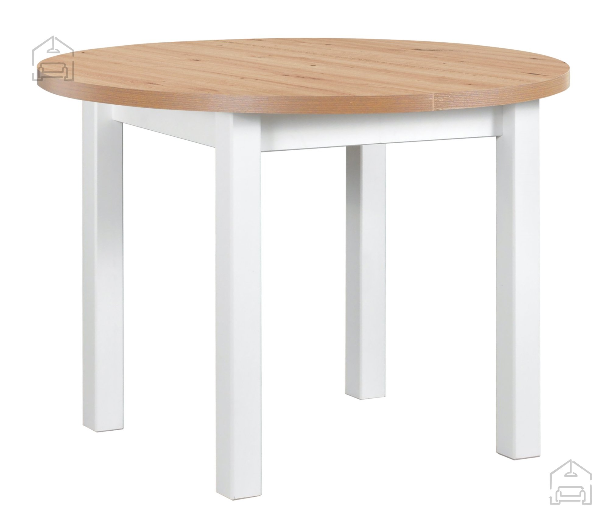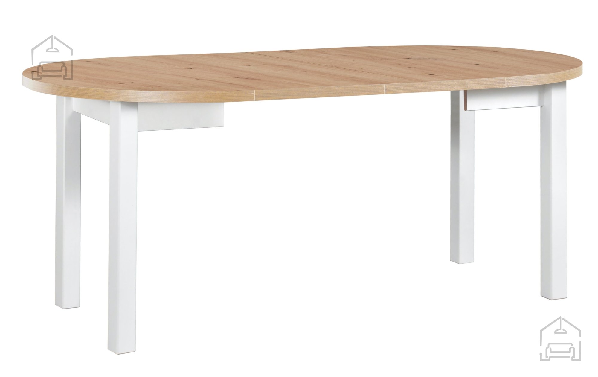 Die Farbkombination weiß/Artisan schafft einen angenehmen Kontrast, der hervorragend zu vielen Einrichtungsstilen passt – vom skandinavischen Minimalismus bis zur rustikalen Gemütlichkeit. Buchenholz, bekannt für seine Festigkeit und Stabilität, garantiert eine lange Lebensdauer, während die laminierte Oberfläche des Tisches eine einfache Reinigung und Pflege ermöglicht. Der Stuhl Hugo 3 weiß 13B aus massivem Holz in derselben Farbe folgt den Linien des Tisches und ergänzt sein ästhetisches Erscheinungsbild. Zusammen bilden sie ein harmonisches Set, das dem Raum Helligkeit und ein Gefühl von Geräumigkeit verleiht.