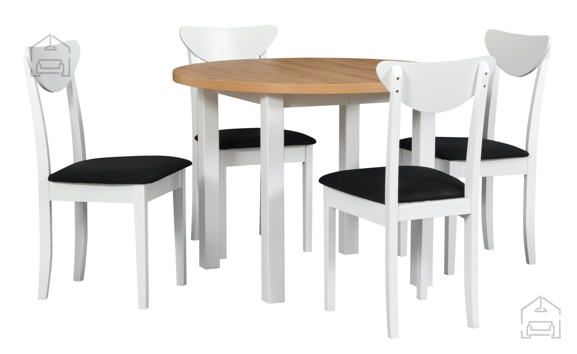 Ausziehbarer Tisch 100–180 cm und massives Buchenholz: Esszimmer-Set Poli 4 weiß/Artisan + 6 Stühle Hugo 3 weiß 13B – Drewmix.