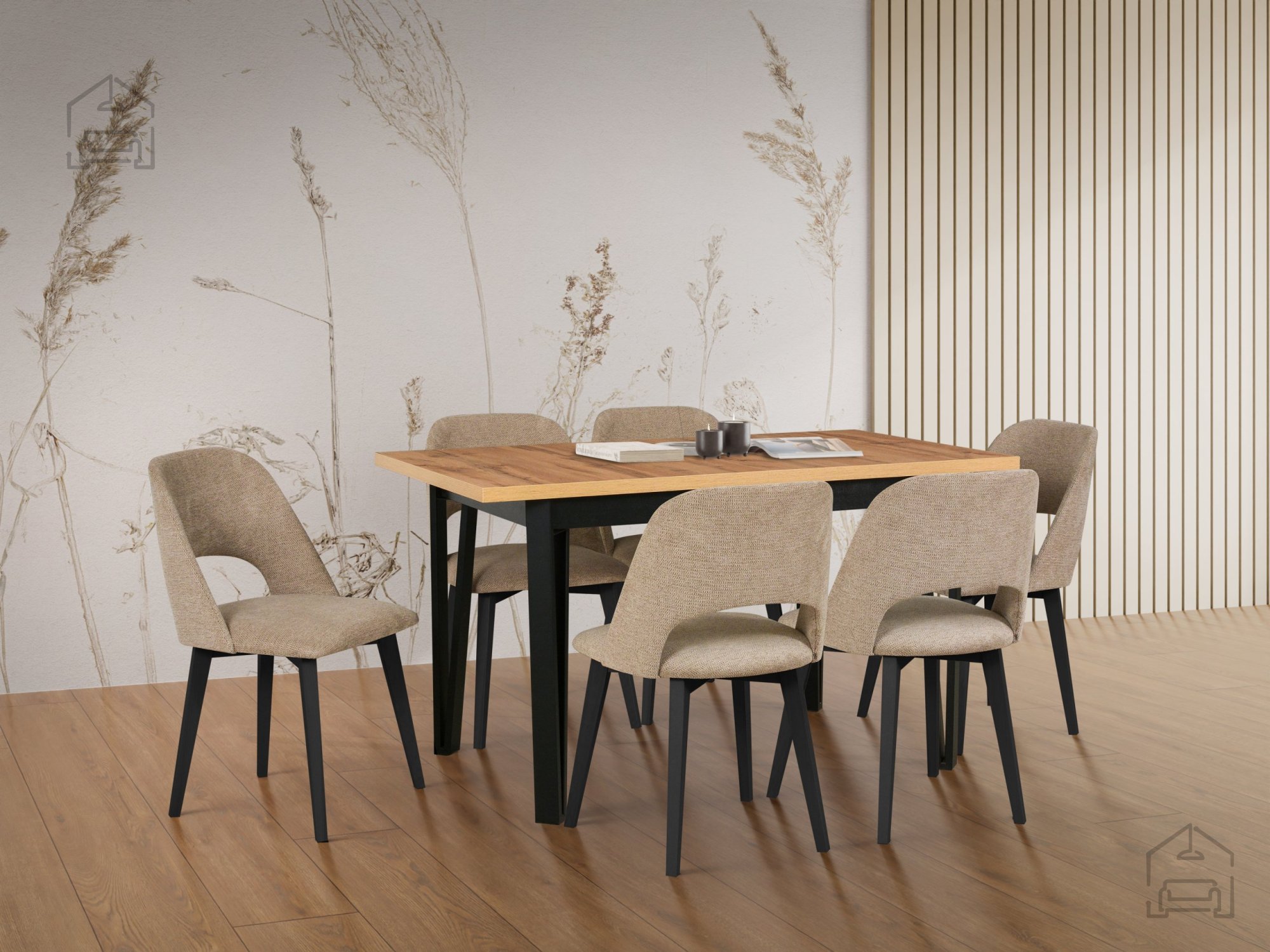 Der ausziehbare Tisch ist einer der größten Vorteile dieses Sets. Der Verlängerungsmechanismus ist einfach zu bedienen und ermöglicht eine schnelle Vergrößerung der Fläche ohne Mühe. Die laminierte Tischplatte ist kratz- und feuchtigkeitsbeständig, was bedeutet, dass der Tisch sein Aussehen auch bei täglichem Gebrauch beibehält. Dank der schlichten Form und des stabilen Holzrahmens eignet sich das Set sowohl für kleinere Küchen als auch für größere Esszimmer oder offene Wohnbereiche.