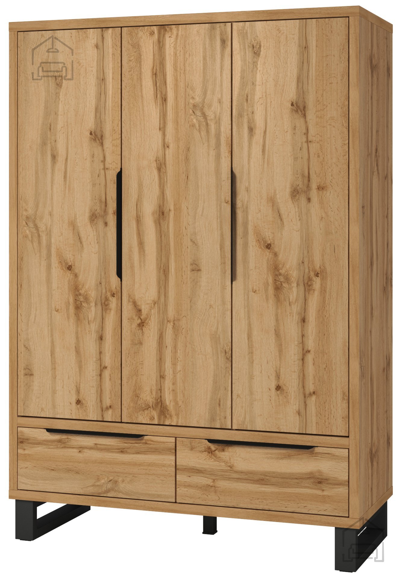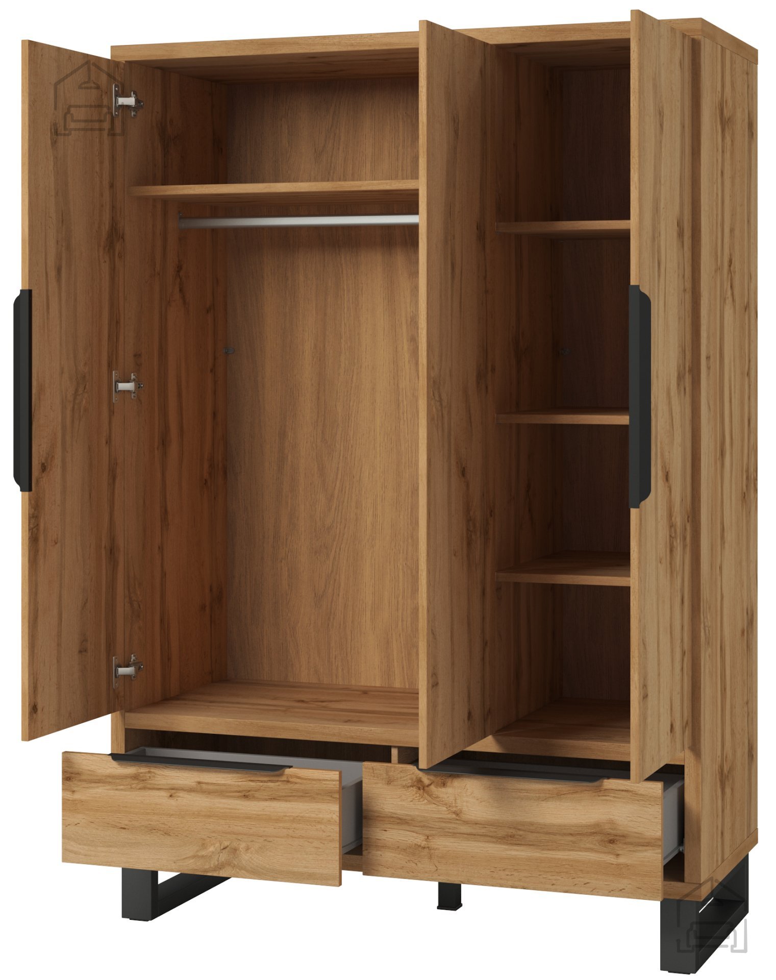 Hergestellt aus hochwertiger laminierter Platte, bietet der Kleiderschrank Halle S langanhaltende Haltbarkeit und einfache Pflege. Die wunderschöne Farbkombination aus Eiche Wotan und Schwarz verleiht Tiefe und Flexibilität, wodurch er sich mühelos mit vorhandenen Möbeln und der Inneneinrichtung kombinieren lässt.