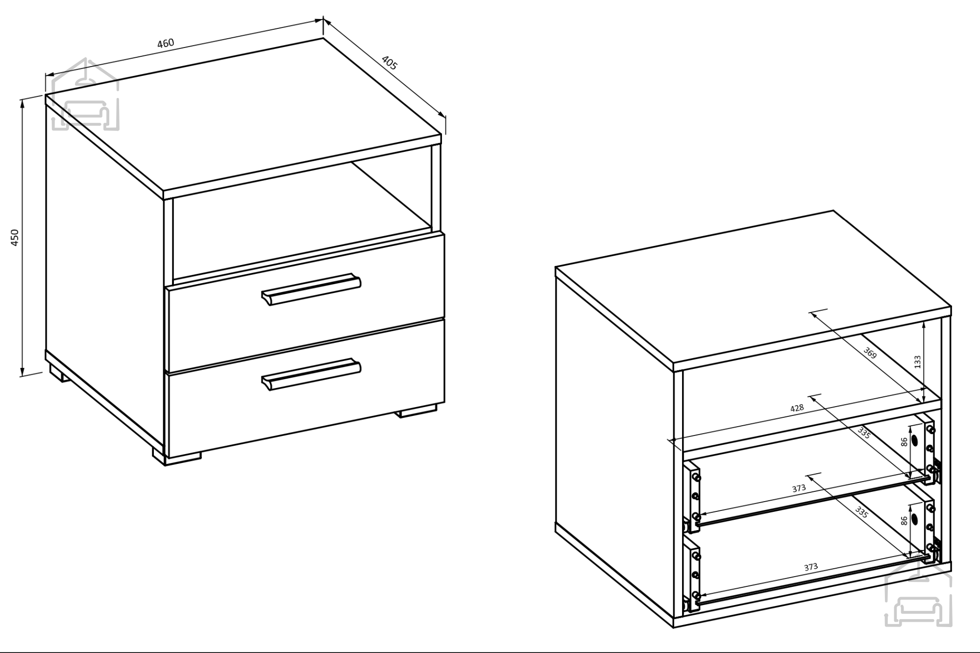 Die Maße des Nachttisches Vertina betragen 46x41x45 cm, was ihn ideal für kleine und große Räume macht. Gefertigt ist er aus einer laminierten Platte mit einer Stärke von 22 mm, was Stabilität und Langlebigkeit garantiert. Die Rückwand besteht aus einer HDF-Platte mit einer Stärke von 3 mm, was die Stabilität zusätzlich erhöht.