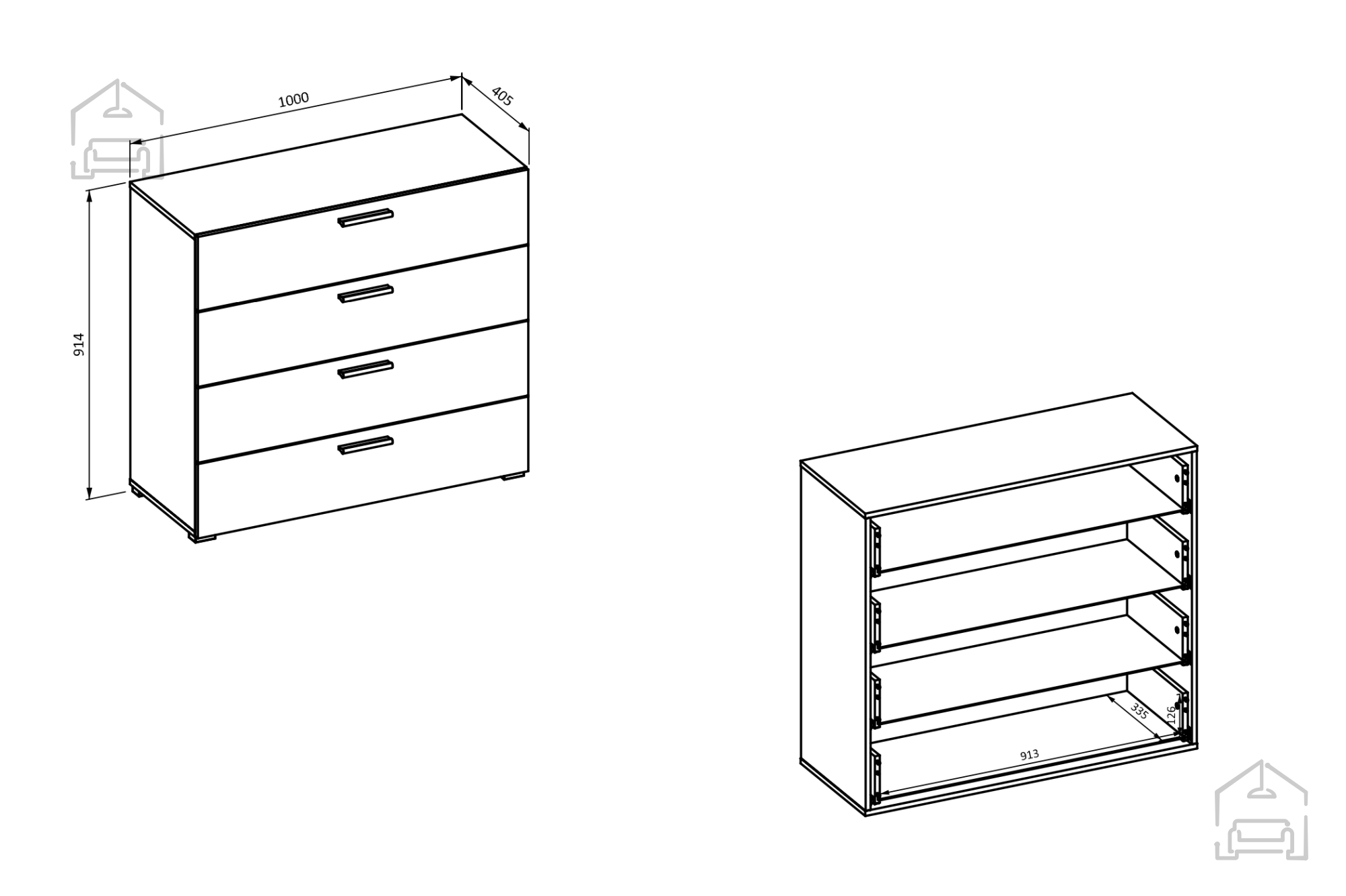 Die Kommode Vertina besteht aus einer laminierten Platte mit einer Stärke von 22 mm, was Langlebigkeit und Widerstandsfähigkeit gegen Beschädigungen gewährleistet. Die Rückwand besteht aus einer HDF-Platte mit einer Stärke von 3 mm, was die Stabilität und Beständigkeit des Möbels zusätzlich erhöht. Alle Kanten sind mit ABS-Kanten verarbeitet, was Abnutzung verhindert und die Lebensdauer des Produkts verlängert.