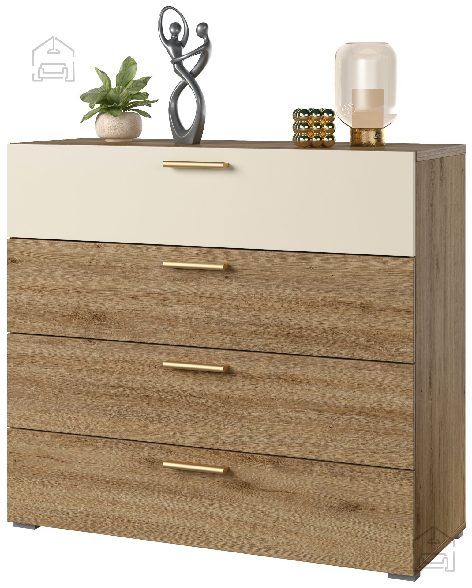 Die Farbe der Kommode, im Ton von wilder Eiche und Beige, bringt natürliche Wärme und Eleganz, die sich hervorragend in verschiedene Einrichtungsstile einfügt. Die Kommode Vertina ist so gestaltet, dass sie sich problemlos in jeden Raum integriert – sei es im Wohnzimmer, im Flur oder im Schlafzimmer.