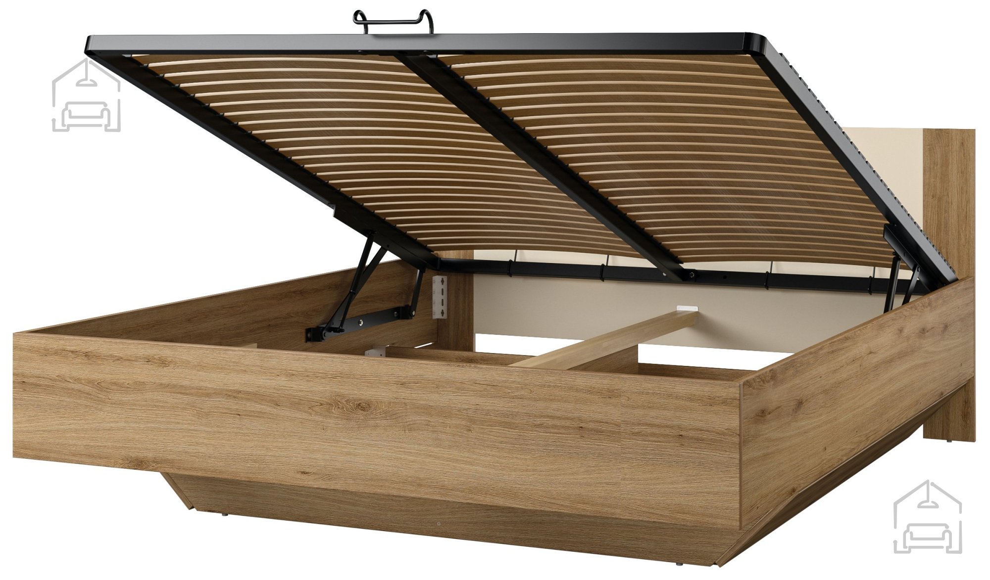 Hebemechanismus: Eine der herausragenden Eigenschaften dieses Bettes ist sein Hebemechanismus, der einen einfachen Zugang zu einem großen Bettkasten ermöglicht. Sparen Sie Platz und bewahren Sie Ordnung in Ihrem Schlafzimmer mit dem praktischen Stauraum.