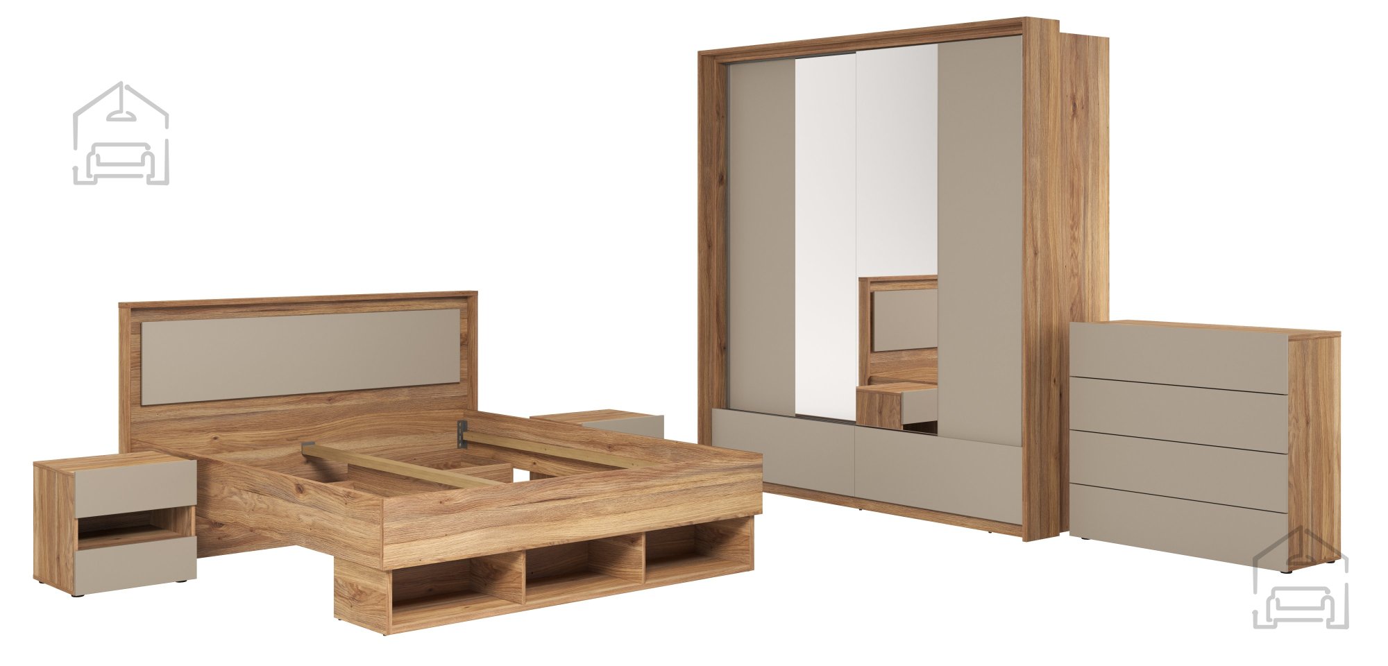 Das Schlafzimmer Impressio besticht durch die elegante Farbe Mauvella Eiche/Kongo, die Wärme und natürliche Ästhetik in jeden Raum bringt. Die Eichenfarbe ist bekannt für ihre Vielseitigkeit, wodurch sie sich leicht mit verschiedenen Einrichtungsstilen kombinieren lässt. Dieses Schlafzimmer wird mit Sicherheit zum Mittelpunkt Ihres Zuhauses und verleiht einen Hauch von Eleganz und Raffinesse.