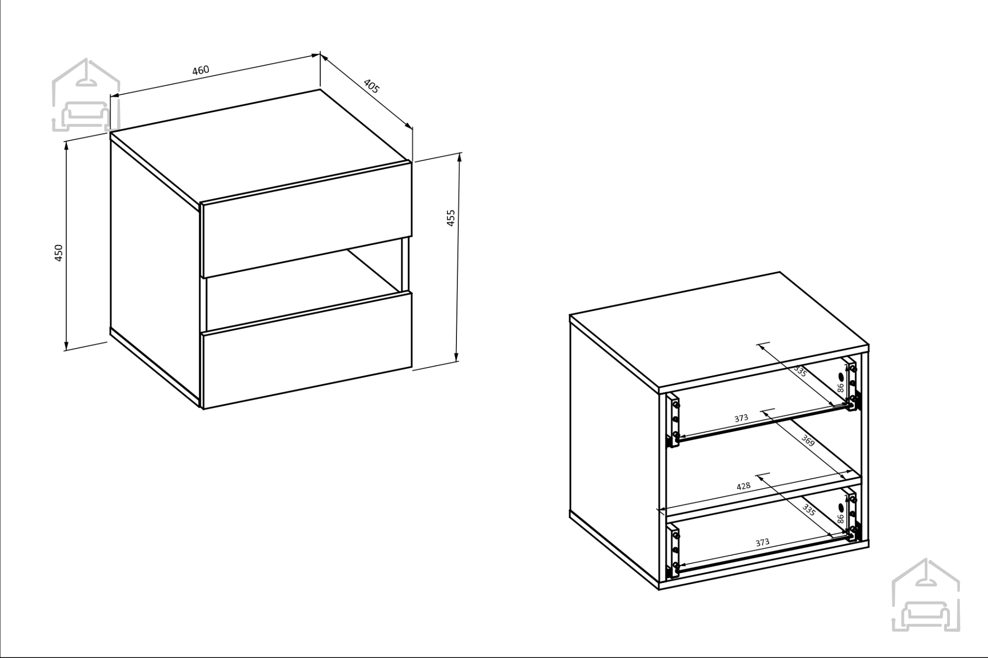 Der Nachttisch Impressio besteht aus einer 15 mm dicken Möbelplatte, die Stabilität und eine lange Lebensdauer garantiert. Die Rückwand des Produkts ist aus einer 3 mm dicken HDF-Platte, was zur Stabilität und Robustheit des Nachttisches beiträgt.