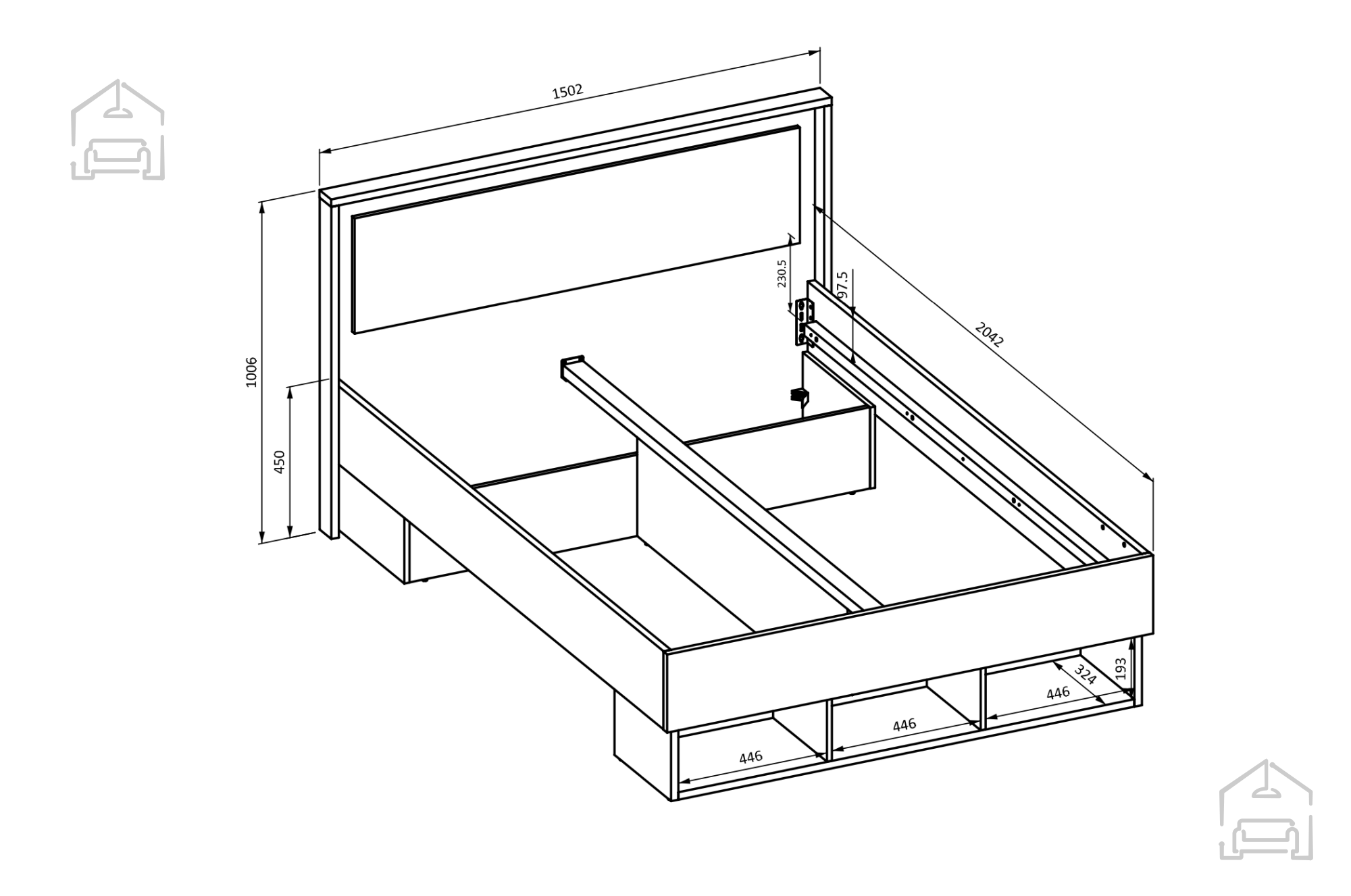 Das Bett ist aus einer Möbelplatte mit 15 mm Stärke gefertigt, was Stabilität und Langlebigkeit gewährleistet. Die Rückwand besteht aus einer HDF-Platte mit 3 mm Stärke, was die Stabilität und Qualität zusätzlich erhöht. Alle Komponenten sind sorgfältig ausgewählt, um eine lange Lebensdauer und einfache Pflege zu garantieren.