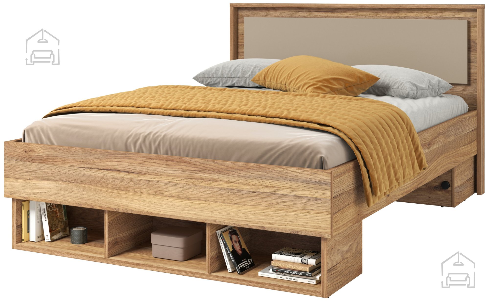 Die Farbe des Bettes Mauvella Eiche/Kongo bringt ein natürliches und warmes Gefühl in Ihr Schlafzimmer. Die Farbkombination ergänzt verschiedene Einrichtungsstile, von klassisch bis modern. Das Bett Impressio ist so gestaltet, dass es sich mühelos in Ihre bestehende Einrichtung einfügt.