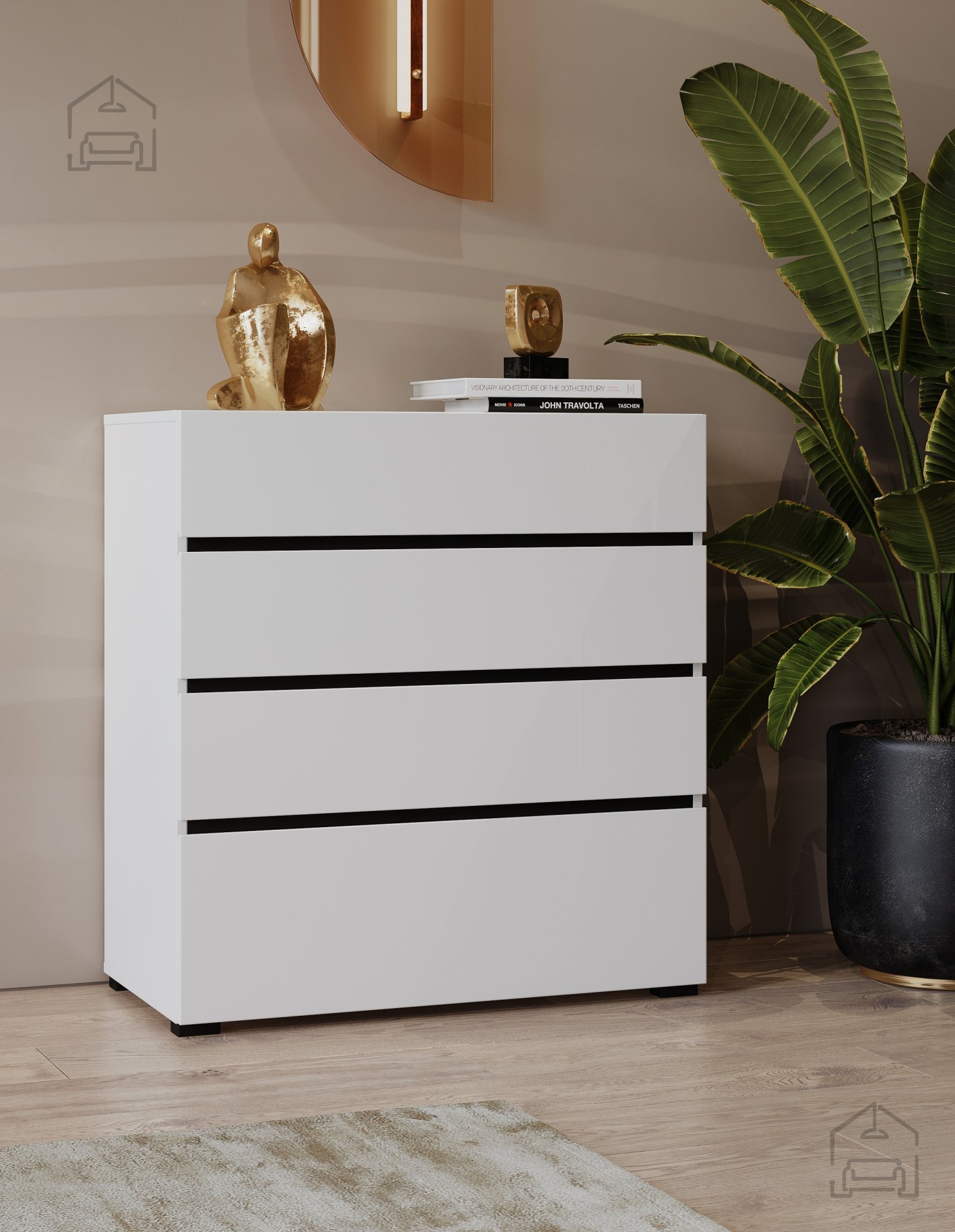 Die Farbkombination weiß/weiß-schwarz der Kommode Cross S passt sich mühelos verschiedenen Einrichtungsstilen an. Egal, ob Sie Ihr Wohnzimmer, Schlafzimmer oder Büro auffrischen möchten – diese Kommode verleiht jedem Raum einen Hauch von Eleganz und Modernität. Ihre schlichte und klare Linienführung ermöglicht eine einfache Integration in jede bestehende Einrichtung.