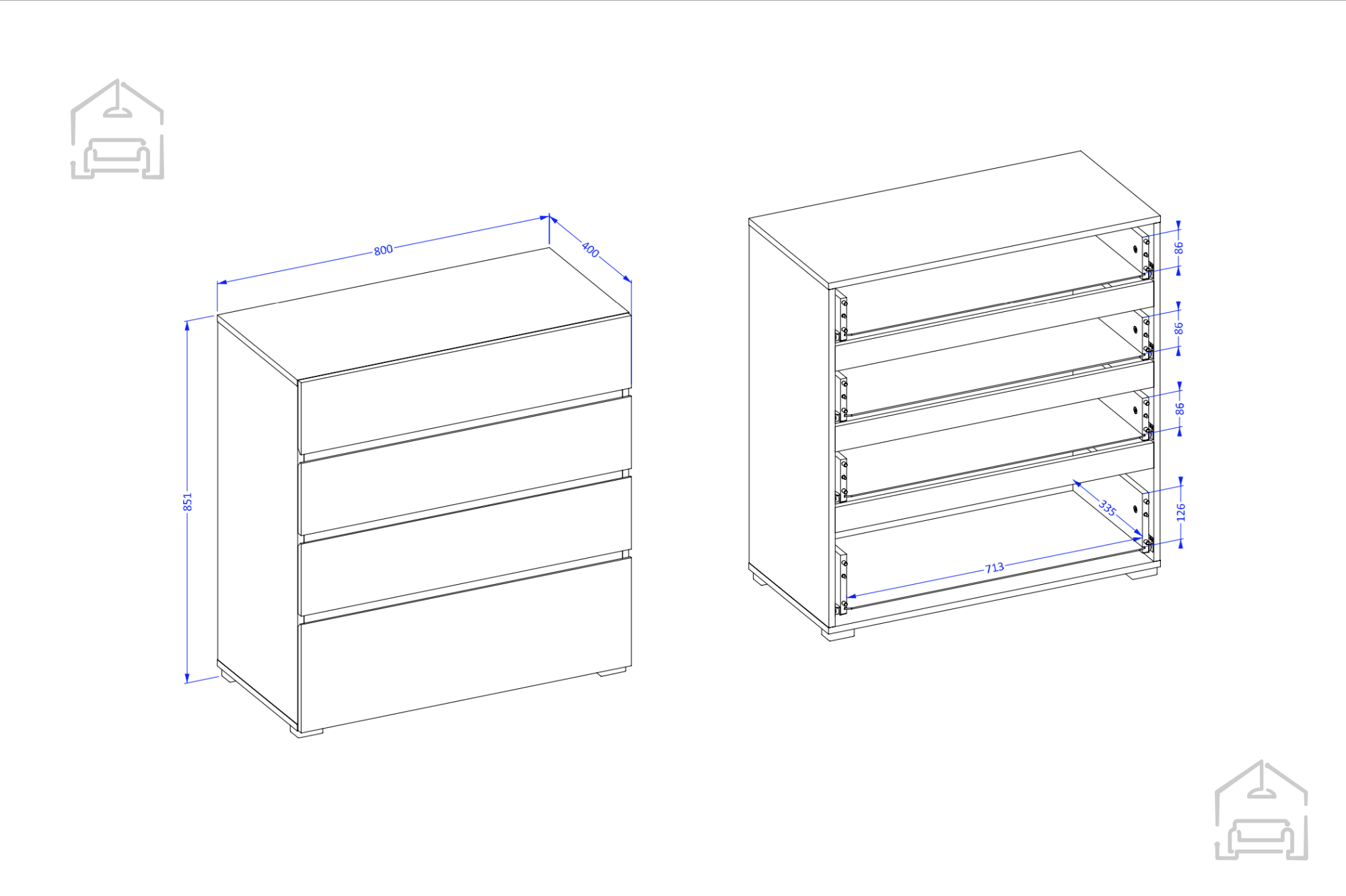 Die Kommode Cross S besteht aus einer Möbelplatte mit 15 mm Stärke, was Langlebigkeit und eine lange Nutzungsdauer garantiert. Die Rückwand ist aus einer HDF-Platte mit 3 mm Stärke gefertigt, was zusätzliche Stabilität und Qualität des Produkts sichert. Die Kanten sind mit ABS-Kanten verarbeitet, was sie stoßfest macht und für eine lange Lebensdauer sorgt.