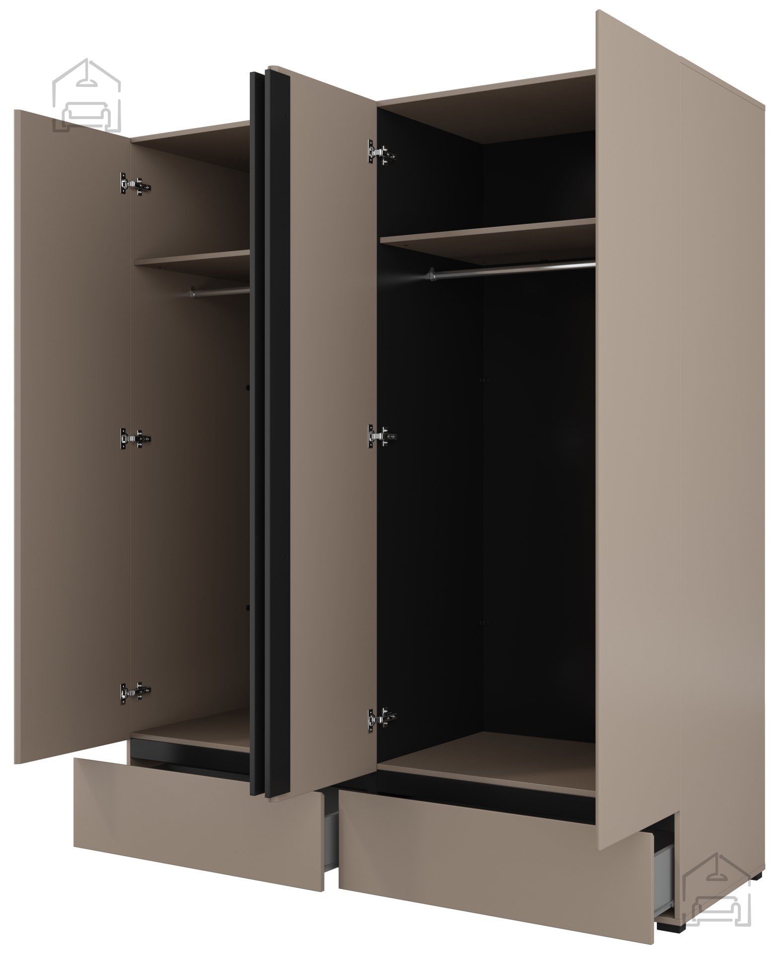Zögern Sie nicht! Holen Sie sich den Kleiderschrank Cross S 2 und genießen Sie einen organisierten und stilvoll eingerichteten Raum. Erleben Sie den Unterschied, den Qualitätsmöbel ausmachen, und schaffen Sie ein Zuhause, in dem Sie sich wohl und zufrieden fühlen.