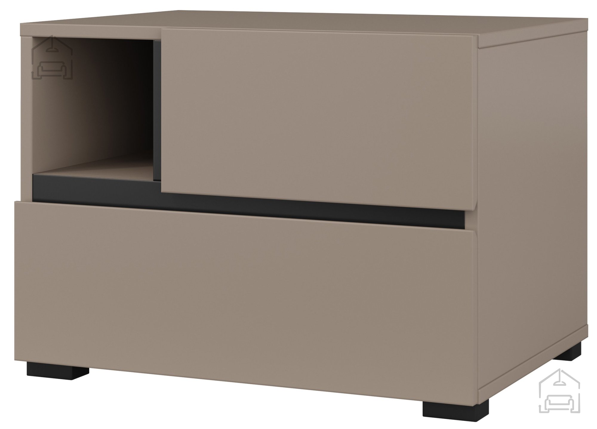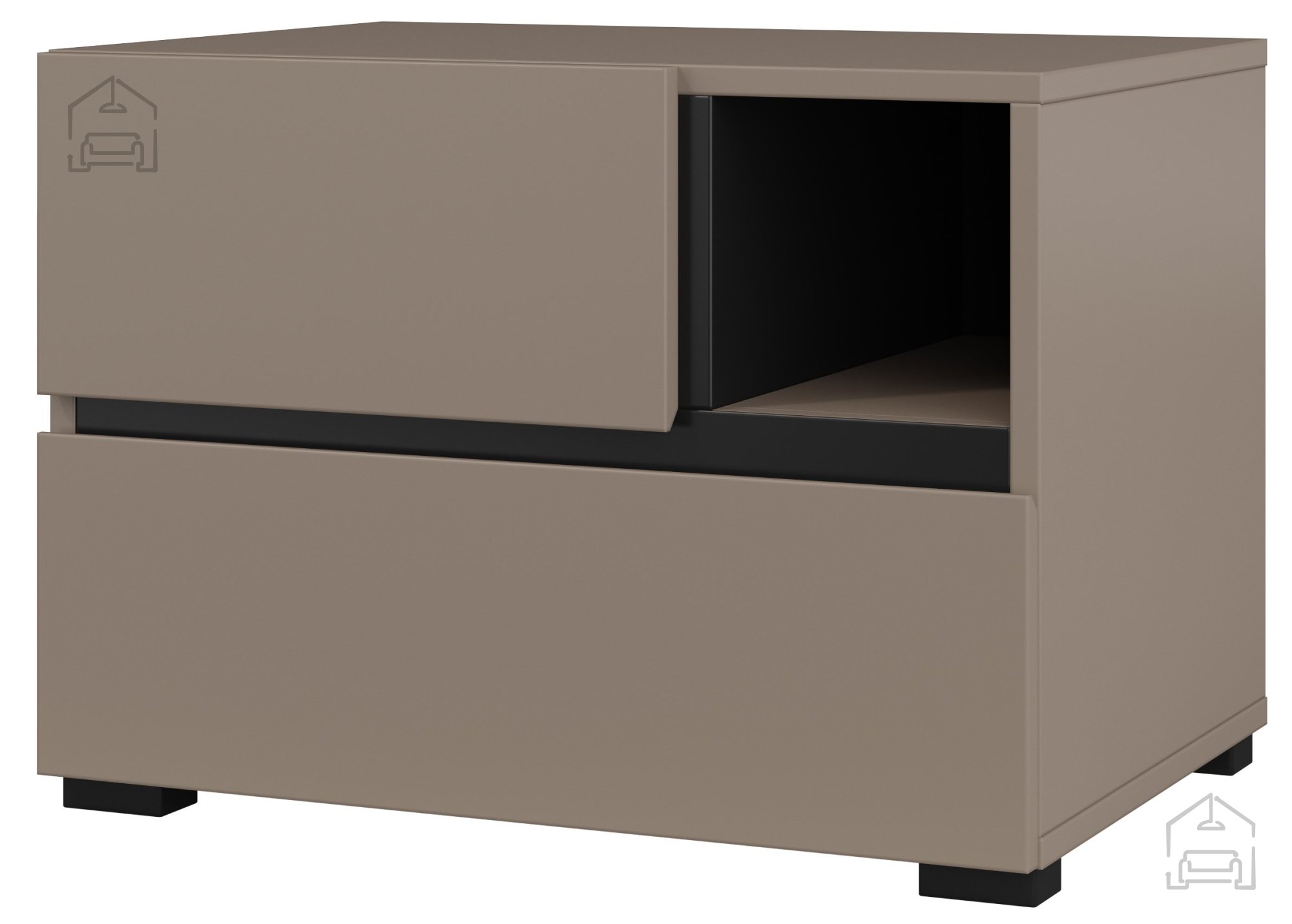 Die Farbe des Nachttisches ist Congo/Congo-Schwarz, was ihm ein modernes und elegantes Aussehen verleiht. Diese neutrale Farbgebung lässt sich leicht mit verschiedenen Stilen und Dekorationen kombinieren und harmoniert somit perfekt mit den übrigen Möbeln in Ihrem Zuhause.