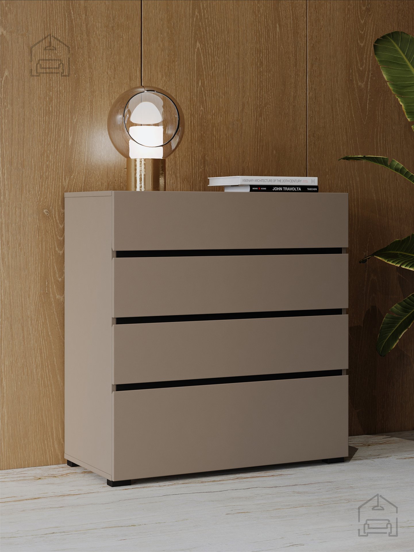Die Kommode Cross S besteht aus einer 15 mm starken Möbelplatte, was Stabilität und Langlebigkeit garantiert. Die Rückwand der Kommode ist aus einer 3 mm starken HDF-Platte gefertigt, was zusätzliche Stabilität und Widerstandsfähigkeit bietet. Die Kanten sind mit ABS-Kanten versehen, was sie vor Beschädigungen und Abnutzung schützt und langfristig einen ästhetischen Wert sichert.