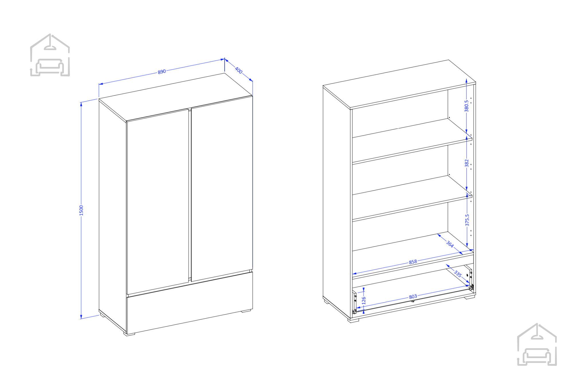 Material: Der Schrank besteht aus einer 15 mm starken Möbelplatte, die Stabilität und eine lange Lebensdauer garantiert. Die Rückwand ist aus einer 3 mm starken HDF-Platte gefertigt, was die Stabilität und Haltbarkeit zusätzlich erhöht. Kanten: ABS-Kanten bieten zusätzlichen Schutz vor Beschädigungen und Abnutzung – entscheidend für die Erhaltung der ansprechenden Optik über viele Jahre.