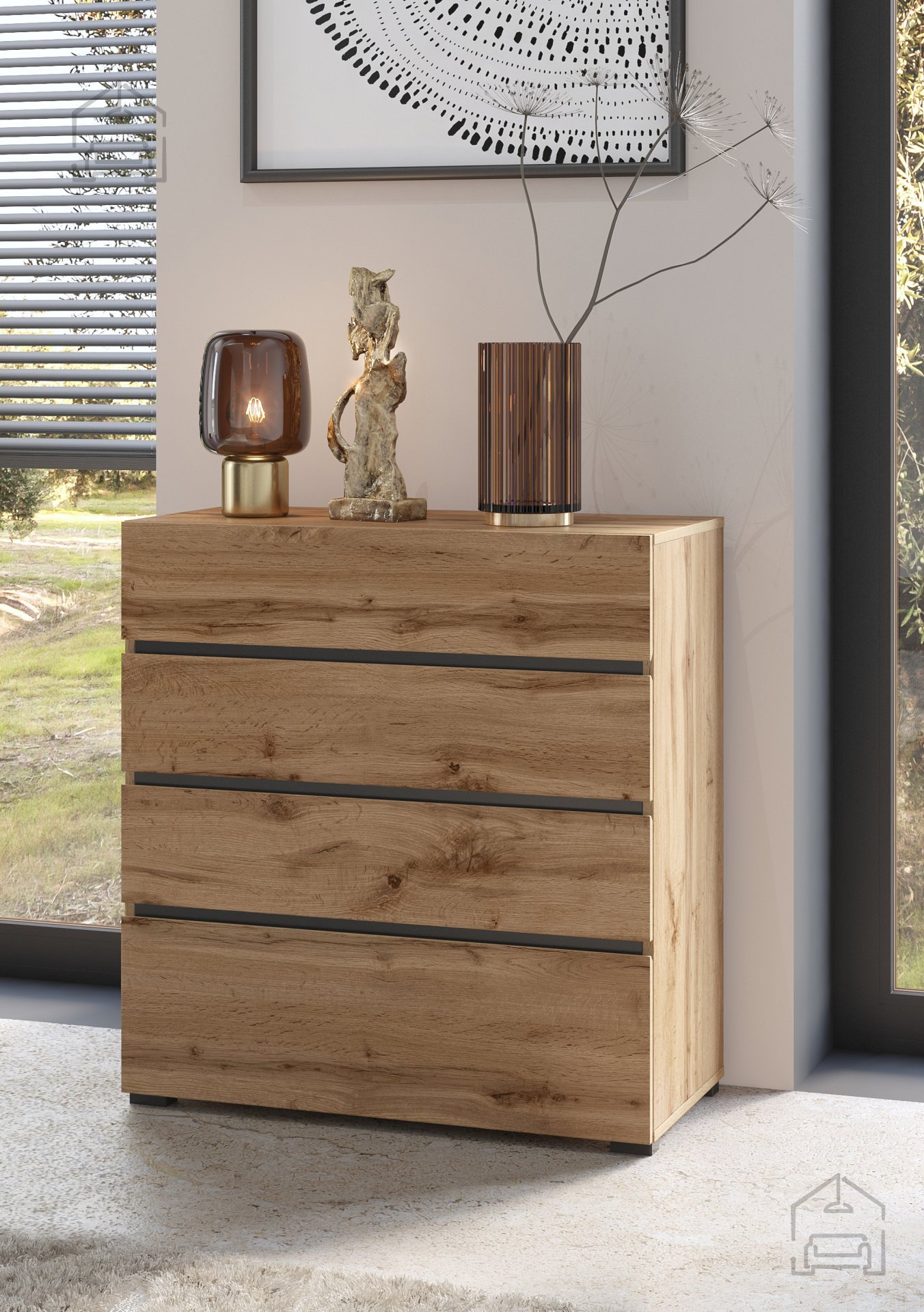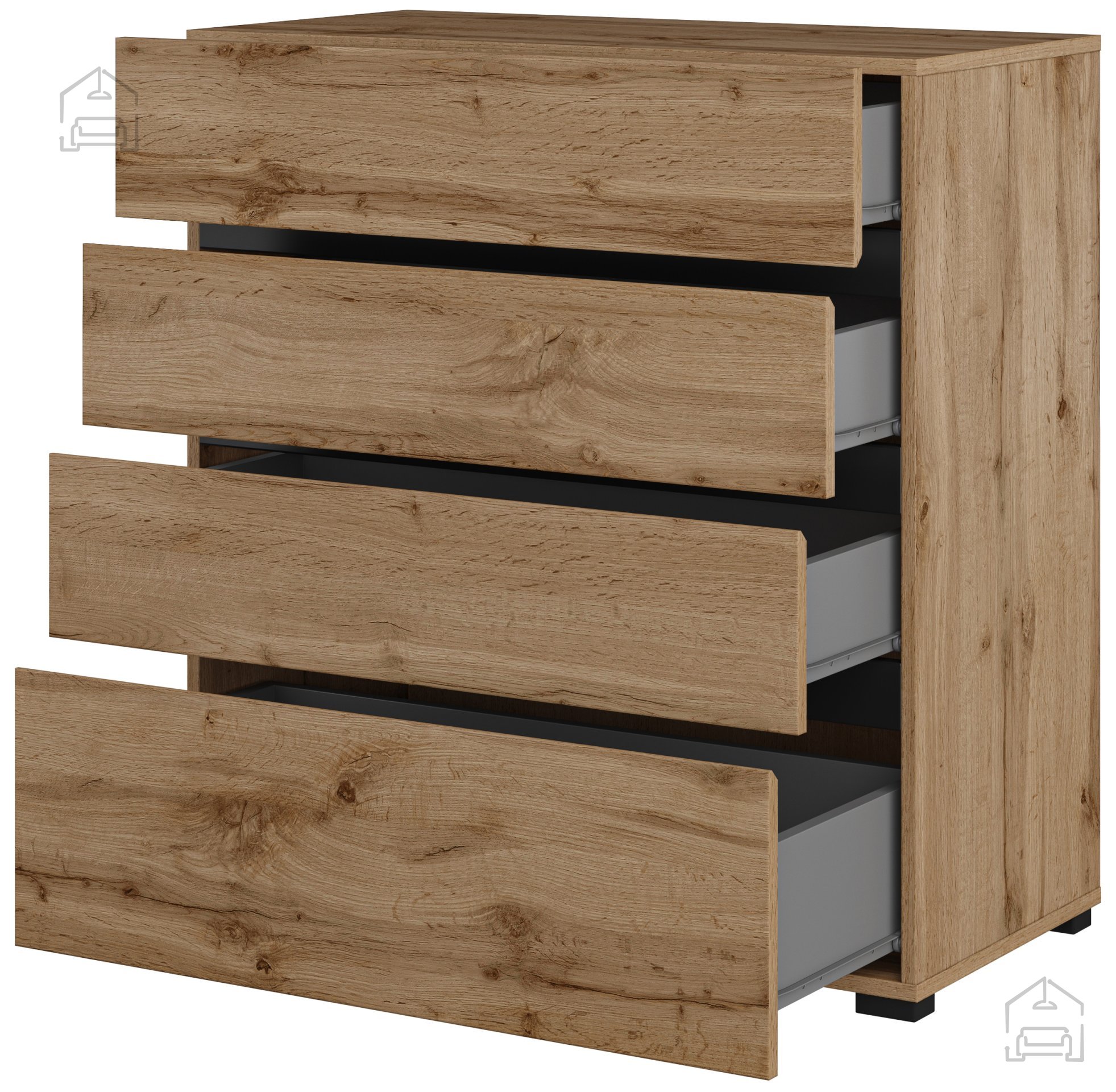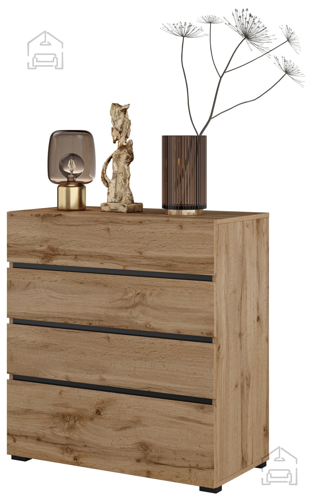 Mit der Kombination aus Farbe Votan Eiche und Votan Eiche-Schwarz ist diese Kommode die perfekte Wahl für Liebhaber modernen und minimalistischen Designs. Ihre klaren Linien und harmonischen Farben fügen sich mühelos in verschiedene Einrichtungsstile ein und verleihen jedem Raum einen Hauch von Eleganz.