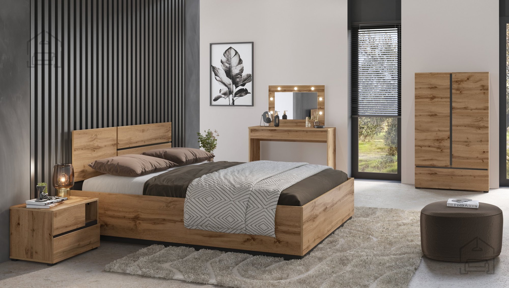 Die Farbkombination aus Wotan-Eiche und Wotan-Eiche-Schwarz verleiht dem Bett Cross S ein zeitgemäßes Erscheinungsbild, das sich hervorragend mit verschiedenen Einrichtungsstilen kombinieren lässt. Ob klassisch, minimalistisch oder industriell eingerichtet – dieses Bett wird garantiert zum Hingucker.