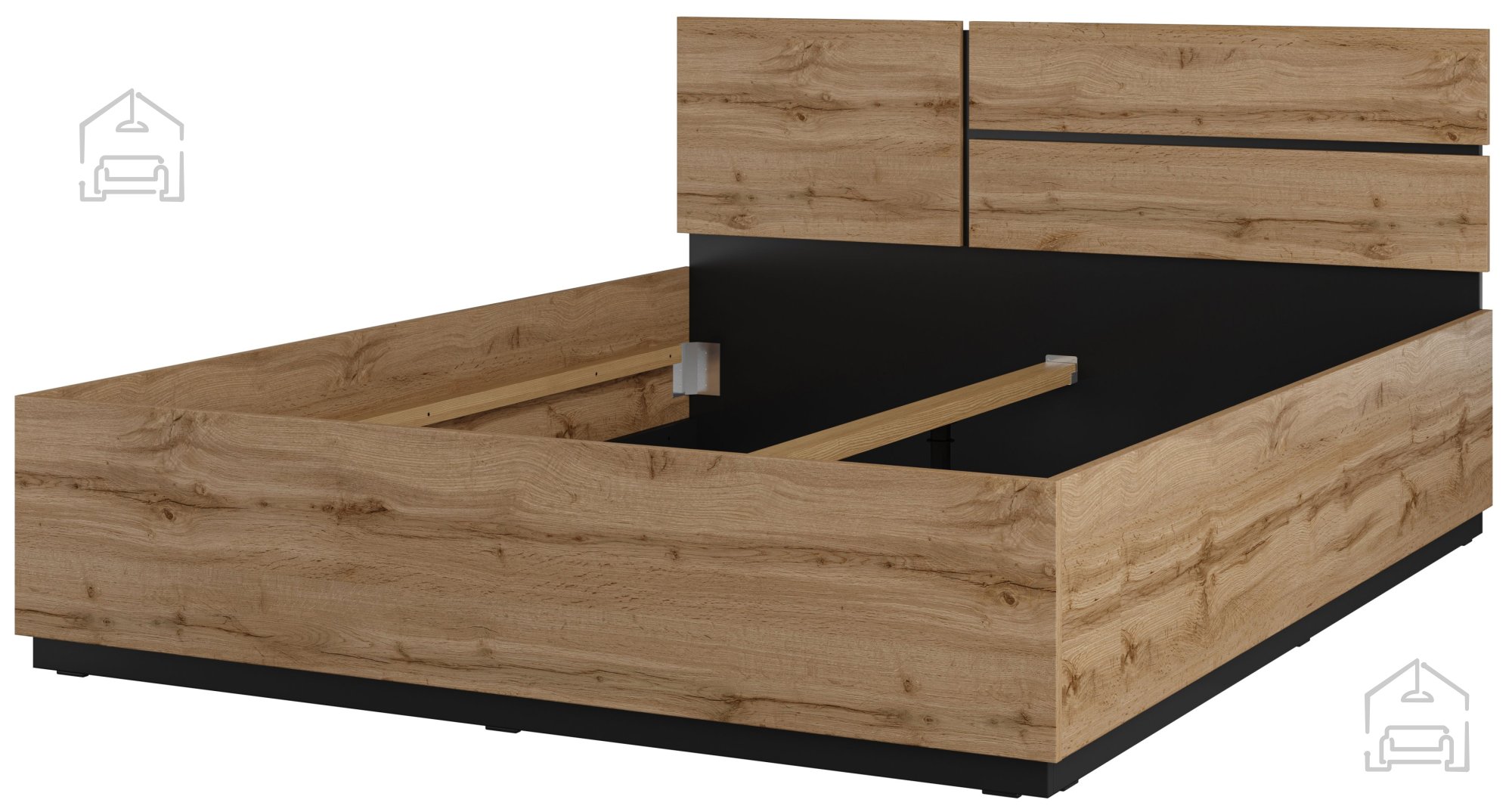 Genießen Sie Komfort und Stil mit dem Bett Cross S, das mit den Maßen 164x205x91 cm überzeugt. Dieses elegante Bett ist für alle konzipiert, die eine hochwertige und funktionale Lösung für ihr Schlafzimmer suchen. Die Kombination aus Wotan-Eiche und Wotan-Eiche-Schwarz verleiht eine moderne Ästhetik, die sich mühelos in jedes Interieur einfügt.
