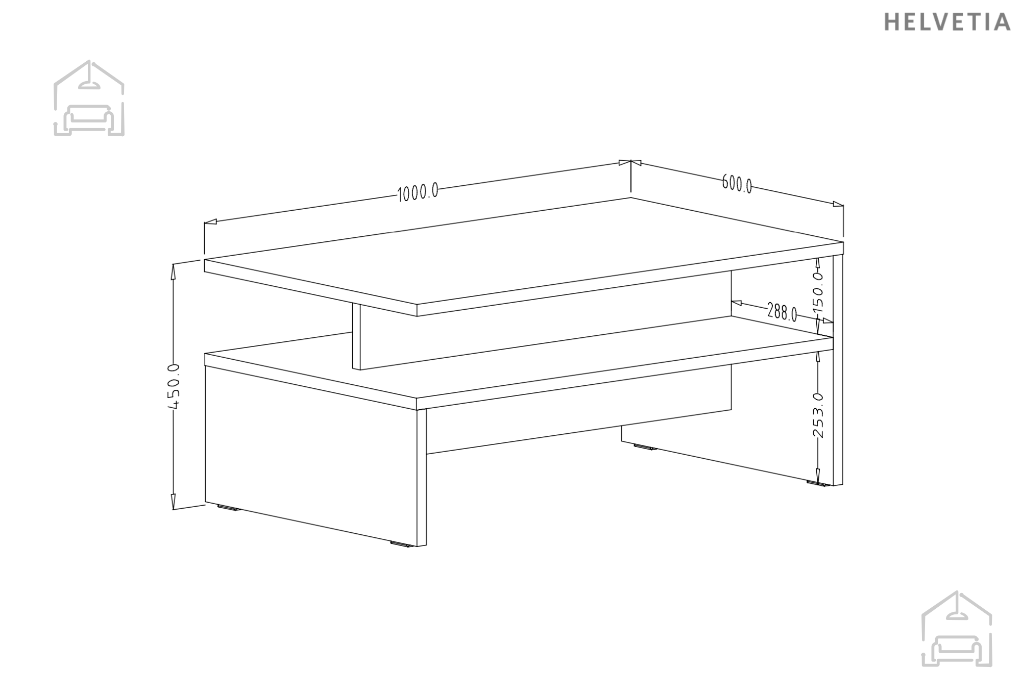 Der Couchtisch Athens besteht aus einer laminierten Platte, die für Stabilität und Langlebigkeit sorgt. Dieses Material bietet nicht nur eine ausgezeichnete Standfestigkeit, sondern lässt sich auch leicht reinigen und pflegen. Die laminierte Oberfläche ist kratz- und fleckenresistent, sodass Ihr Tisch auch nach Jahren der Nutzung schön und funktional bleibt.