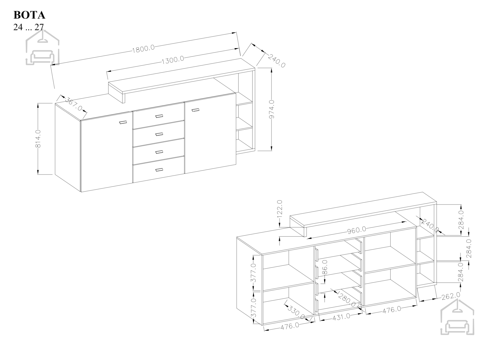 Die Kommode Bota ist nicht nur ästhetisch, sondern auch äußerst funktional. Mit ihren geräumigen Schubladen und Fächern bietet sie ausreichend Platz zur Aufbewahrung all Ihrer Gegenstände – von Büchern und Kleidung bis hin zu Accessoires und anderen Utensilien. Organisieren Sie Ihren Raum und befreien Sie sich von Unordnung, die wertvollen Platz wegnimmt.