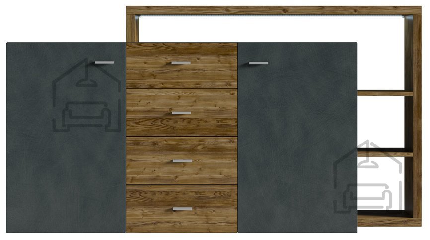 Die Kommode Bota ist aus hochwertigem MDF-Material gefertigt, was eine lange Lebensdauer und hervorragende Stabilität garantiert. Ihre Farbe Appenzeller Fichte/Matera verleiht einen Hauch natürlicher Eleganz und fügt sich harmonisch in verschiedene Interieurs ein. Mit diesem Möbelstück schaffen Sie eine angenehme und warme Atmosphäre in Ihrem Zuhause.