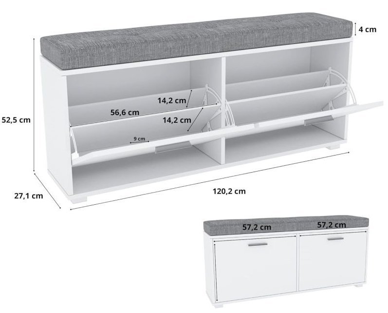In jedem Zuhause ist Organisation der Schlüssel, um Ordnung und Komfort zu bewahren. Wir präsentieren Ihnen den Schuhschrank Pelago 120, eine herausragende Lösung zur Aufbewahrung Ihrer Schuhe und modischen Accessoires. Mit den Maßen 120x27x52.5 cm ist dieser Schrank ideal für jeden Vorraum oder Flur und sorgt dafür, dass Ihr Raum ordentlich und ästhetisch wirkt.