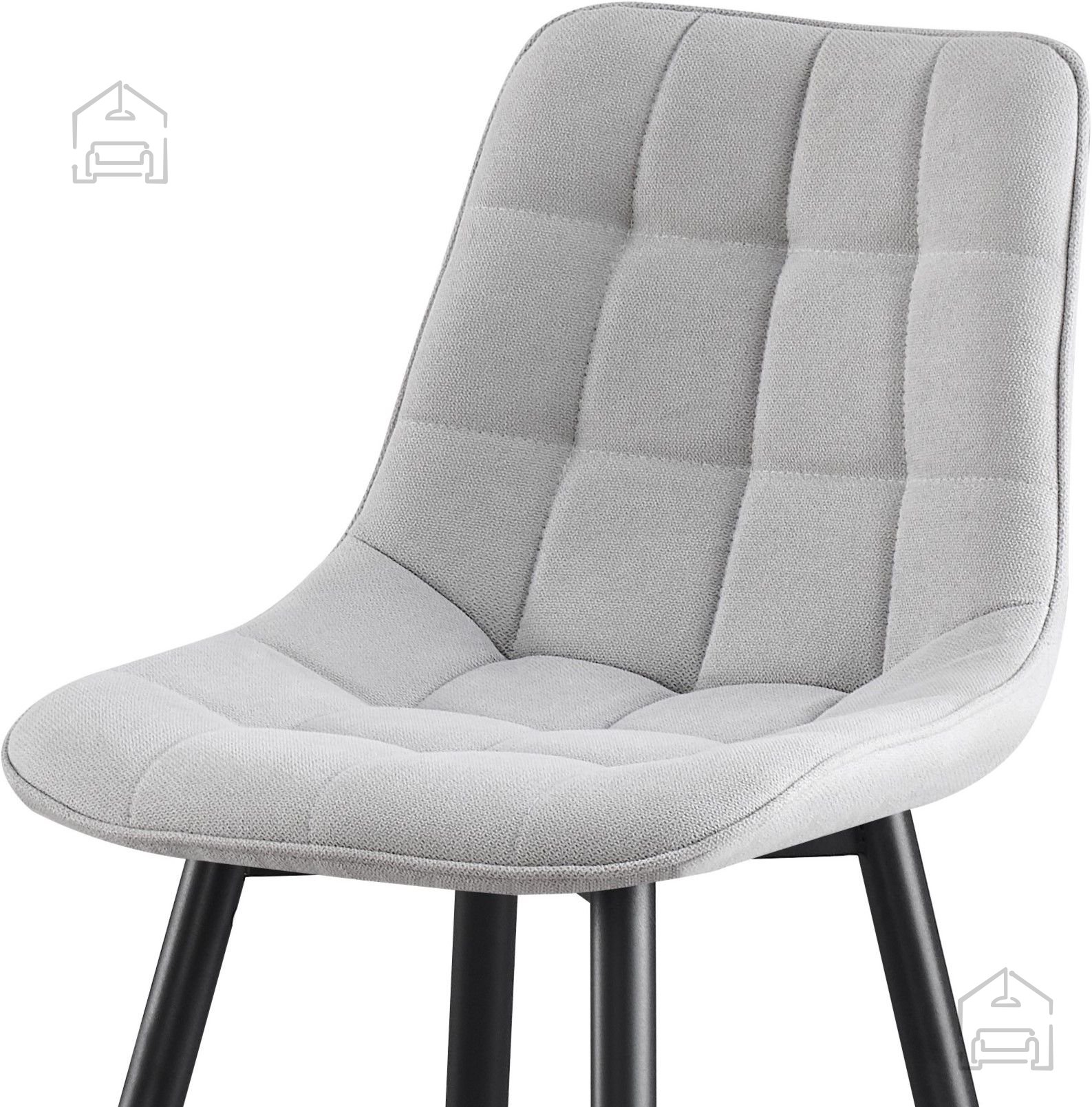 Der hochwertige Stoff, der Sitzfläche und Rückenlehne überzieht, ist mit dekorativen Quadraten abgesteppt. Diese Details verleihen dem Hocker eine visuelle Attraktivität und sorgen für ein einzigartiges Aussehen, das garantiert die Blicke Ihrer Gäste auf sich zieht.