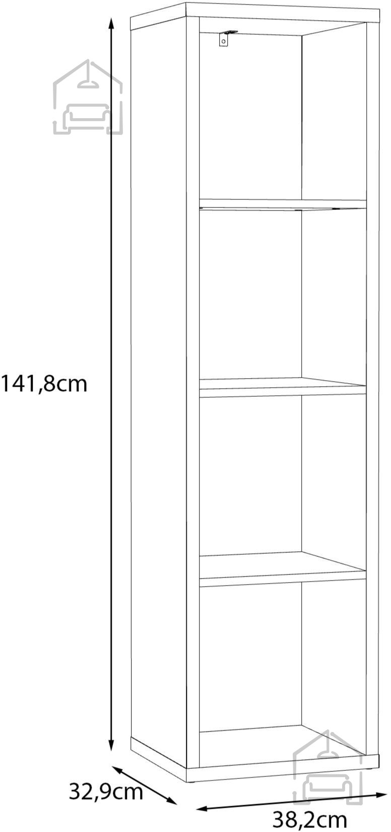 Der Regalschrank Mauro misst 38x33x142 cm und gehört damit zu den kompakten, aber dennoch geräumigen Aufbewahrungseinheiten. Er ist aus hochwertiger Spanplatte gefertigt, einem Material, das für seine Langlebigkeit und Widerstandsfähigkeit bekannt ist. Die Oberfläche ist mit Melamin beschichtet, was die Kratzfestigkeit erhöht und eine einfache Reinigung ermöglicht.