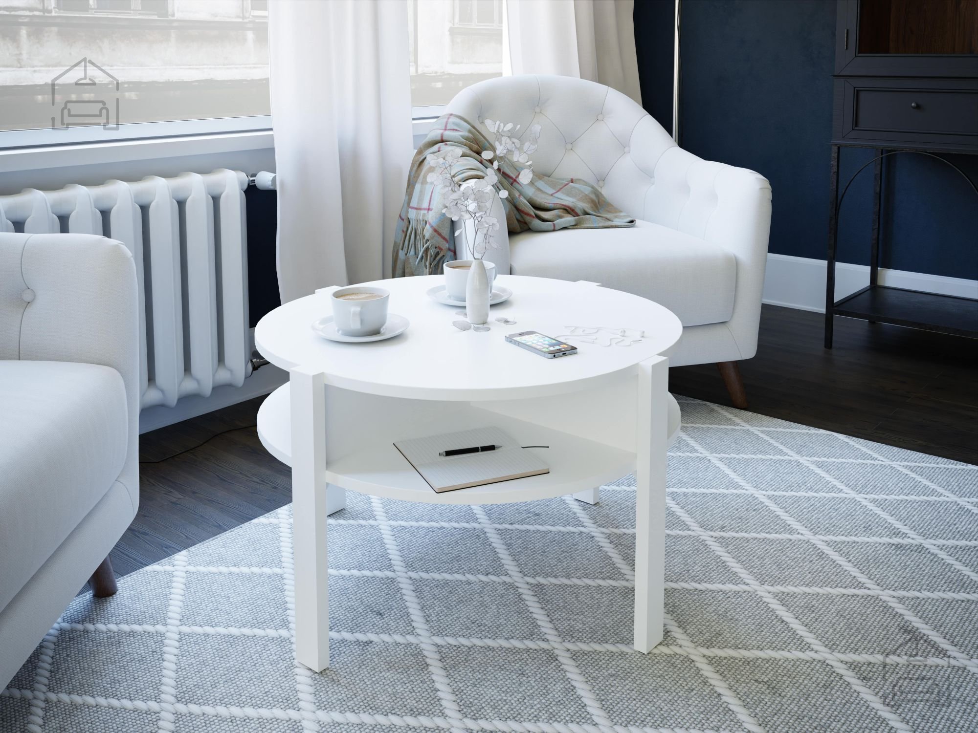 Die Maße des Produkts betragen 74.5x74.5x45.5 cm, was bedeutet, dass er die ideale Größe für die meisten Wohnzimmer hat, da er ausreichend Platz für Bücher, Zeitschriften, Kaffeetassen oder sogar Dekorationsgegenstände bietet. Seine runde Form ermöglicht es, den Tisch leicht an verschiedene Raumgestaltungen anzupassen, und trägt zudem zu einer angenehmeren und fließenderen Bewegung um ihn herum bei.