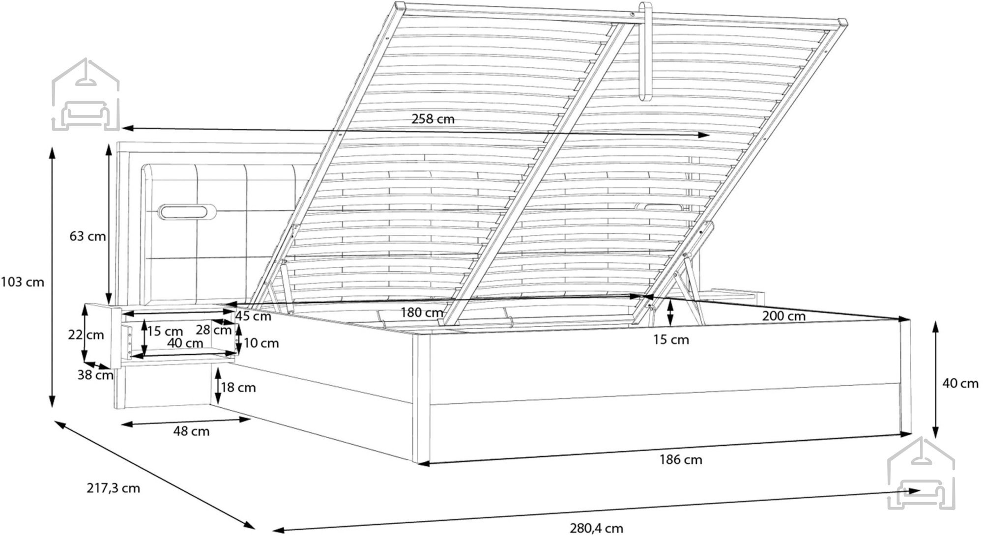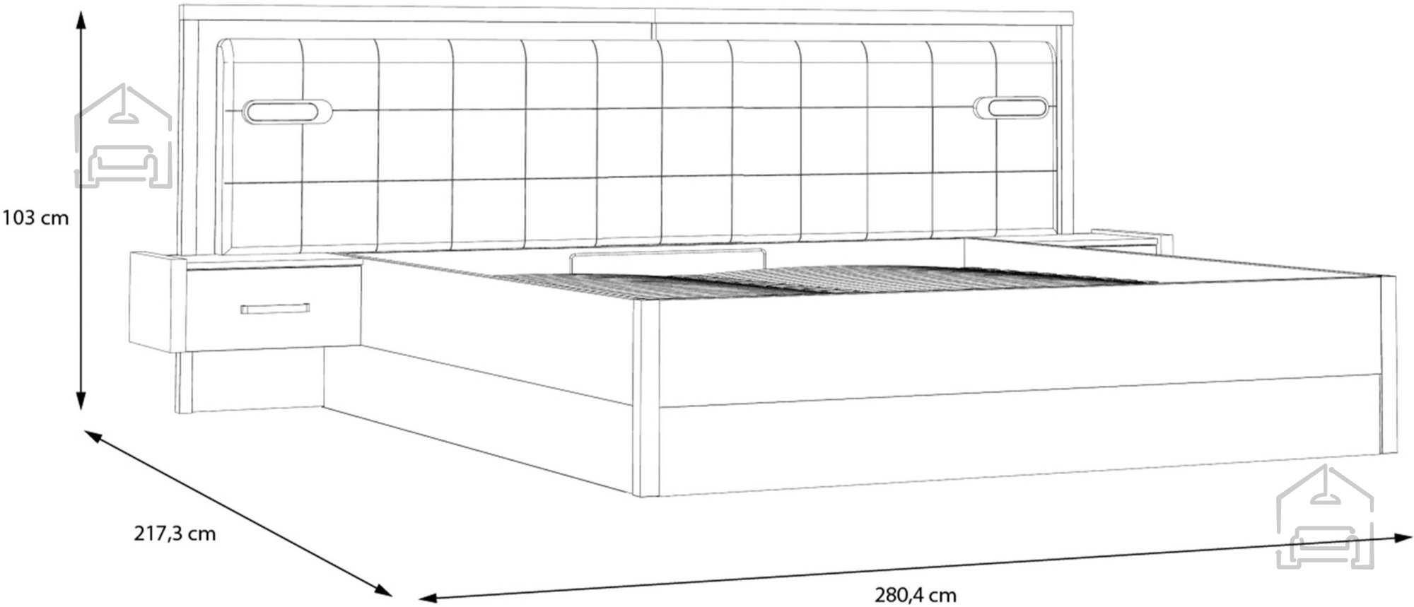 Die Nachttische an den Seiten haben eine Tragkraft von bis zu 10 kg, ihre Schubladen eine Tragkraft von bis zu 5 kg. Die maximale Belastung des Bettes selbst beträgt 220 kg. Der Lattenrost ist im Lieferumfang enthalten, die Matratze ist jedoch nicht im Kauf enthalten!