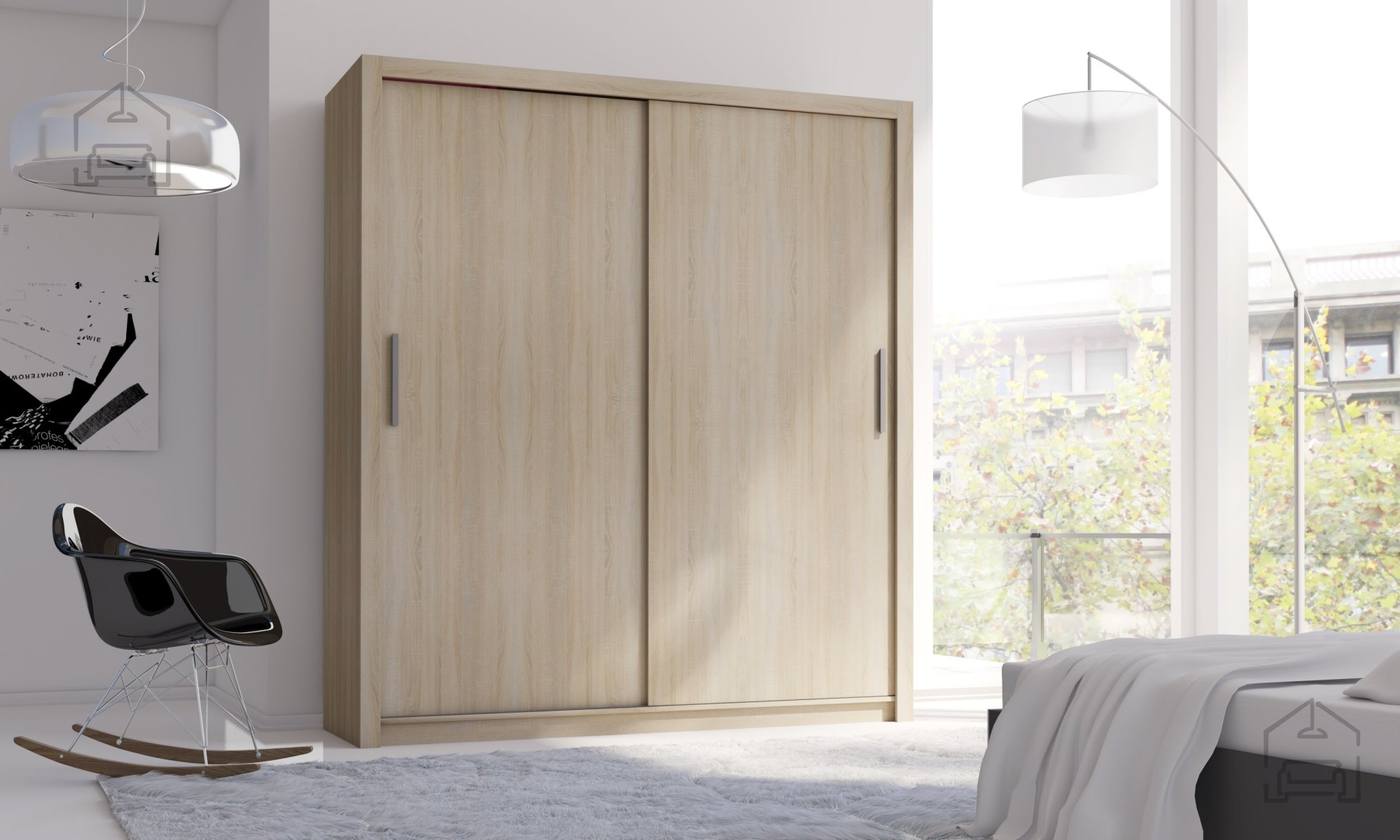 Der Kleiderschrank mit Schiebetüren Mistral 180 cm in der Farbe Eiche Sonoma ist die perfekte Kombination aus Eleganz, Funktionalität und Qualität. Seine hochwertige Verarbeitung und durchdachte Innenorganisation sorgen dafür, dass Ihre Garderobe stets ordentlich und zugänglich bleibt. Verpassen Sie nicht die Gelegenheit, Ihr Zuhause mit diesem außergewöhnlichen Möbelstück zu bereichern, das all Ihre Anforderungen an Aufbewahrung und ästhetische Perfektion erfüllt.